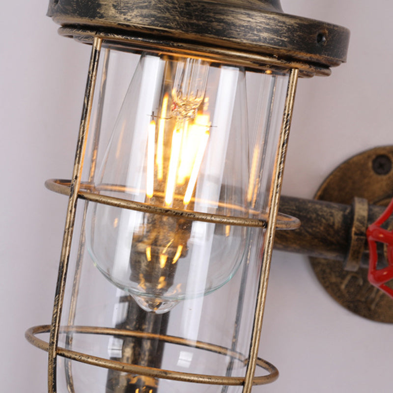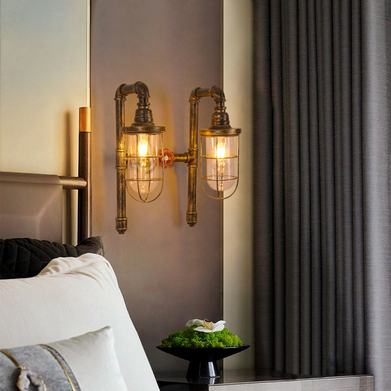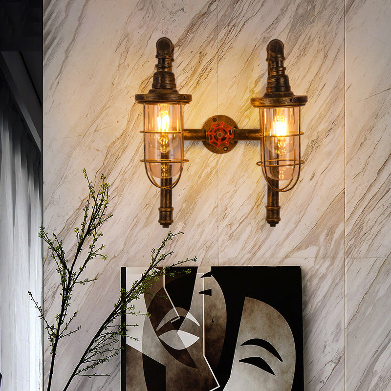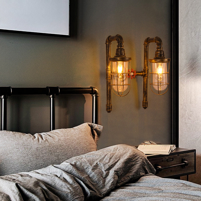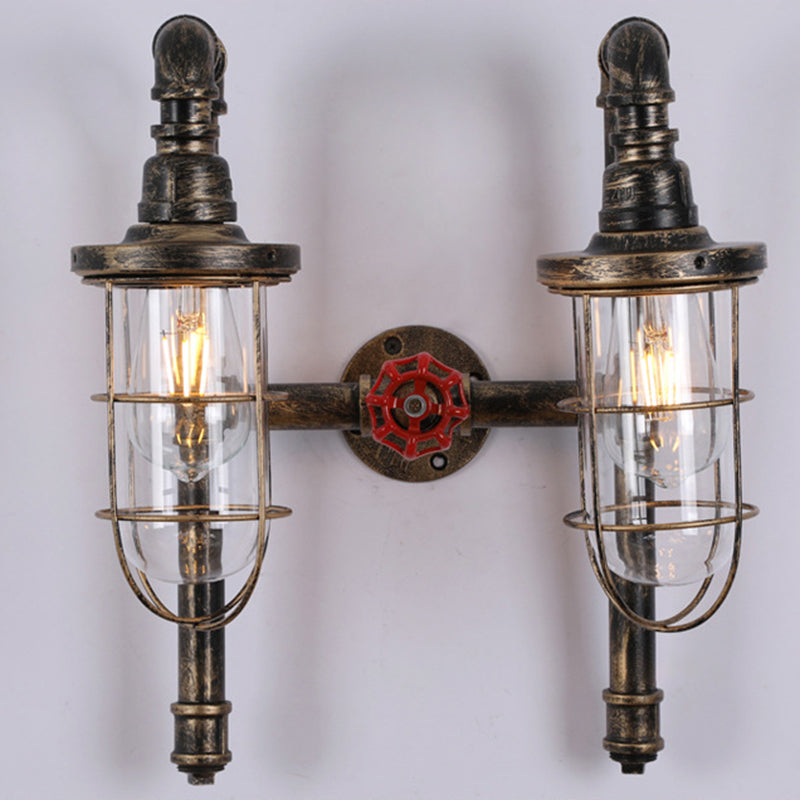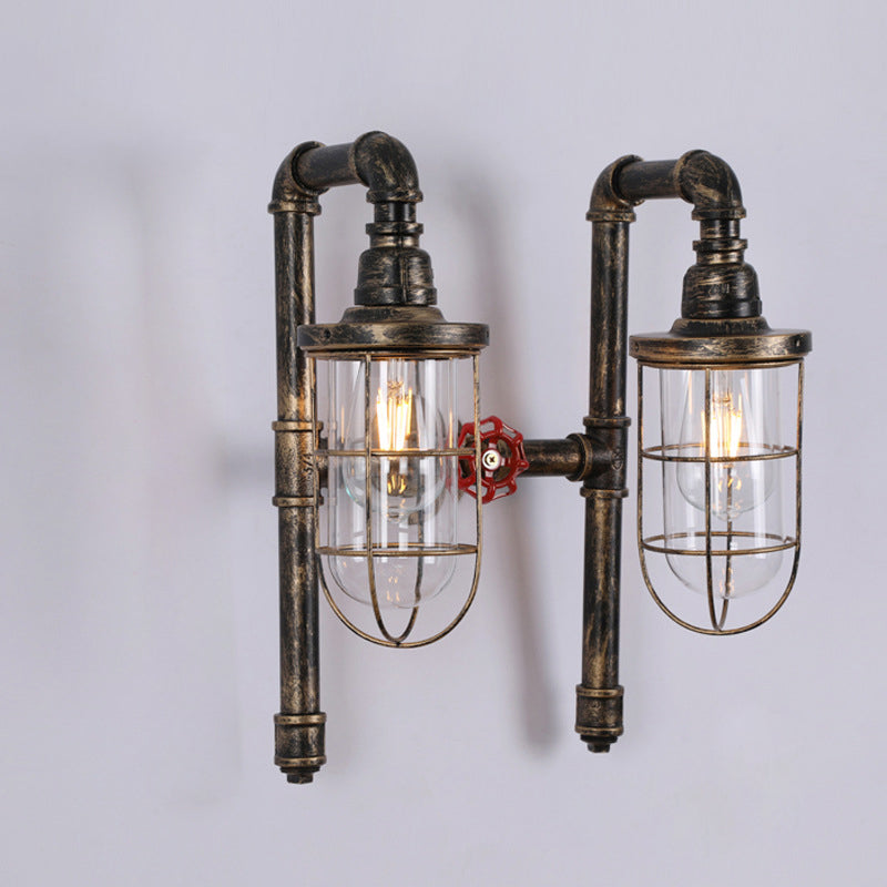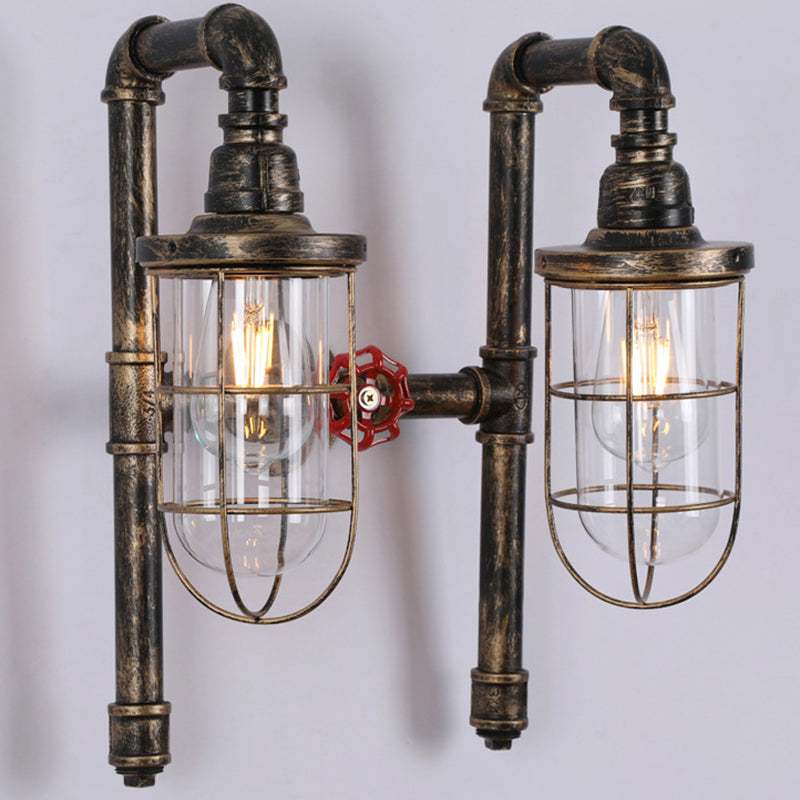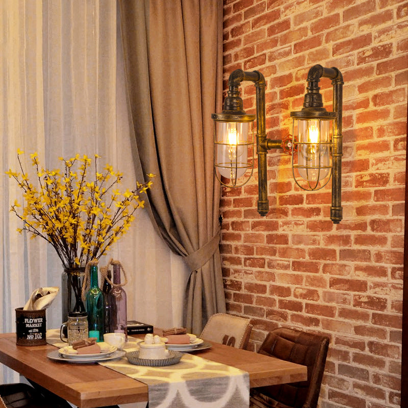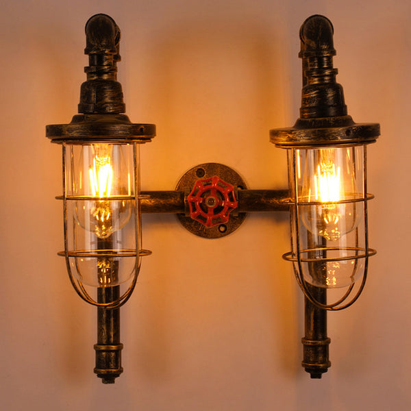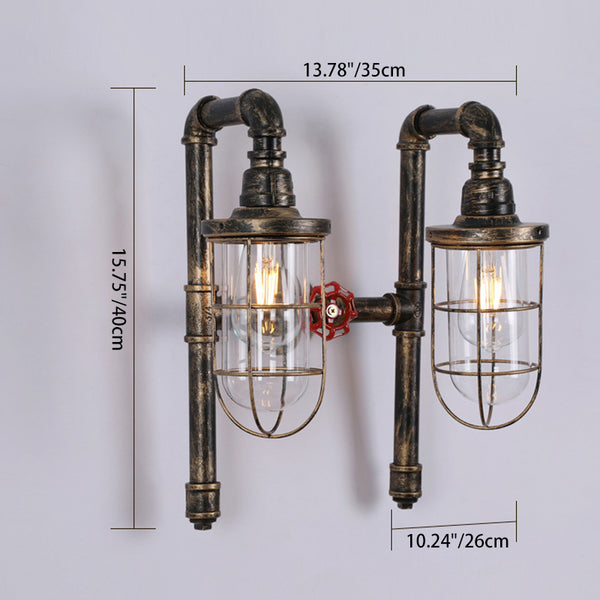 Lampada da parete industriale con gabbia metallica a 2 tubi di luce