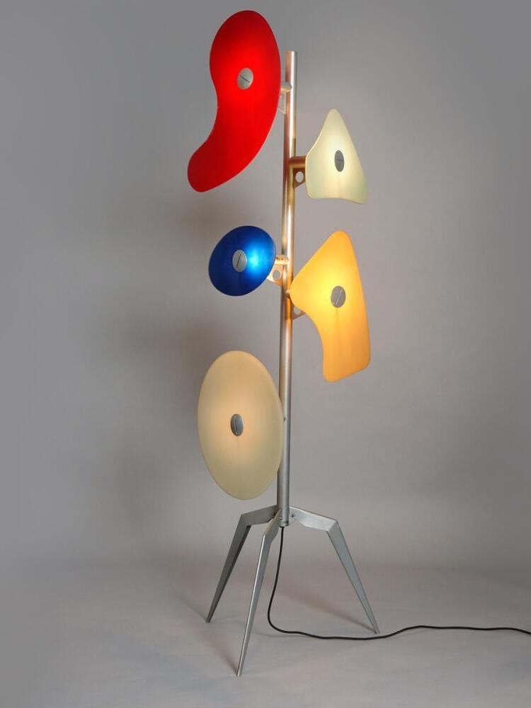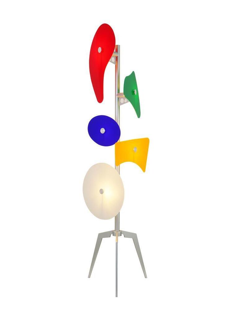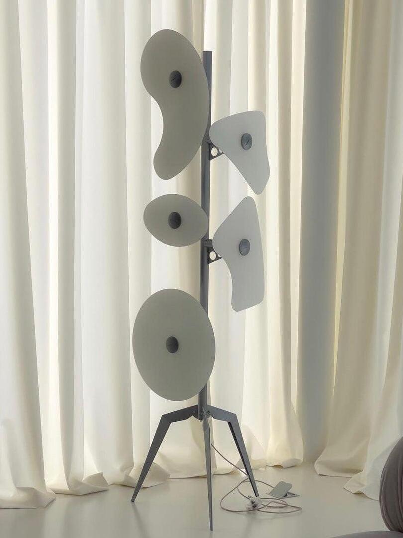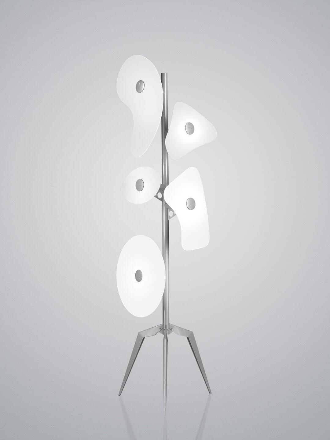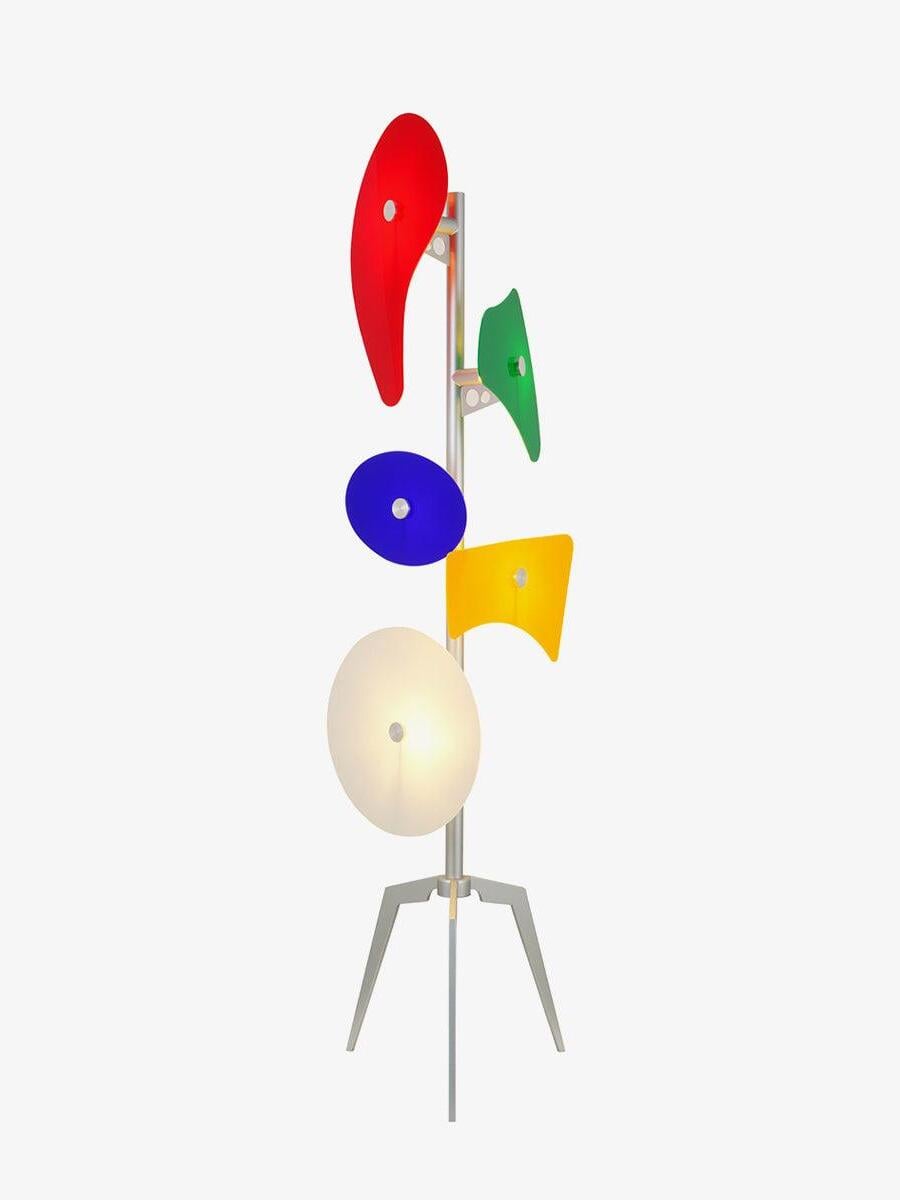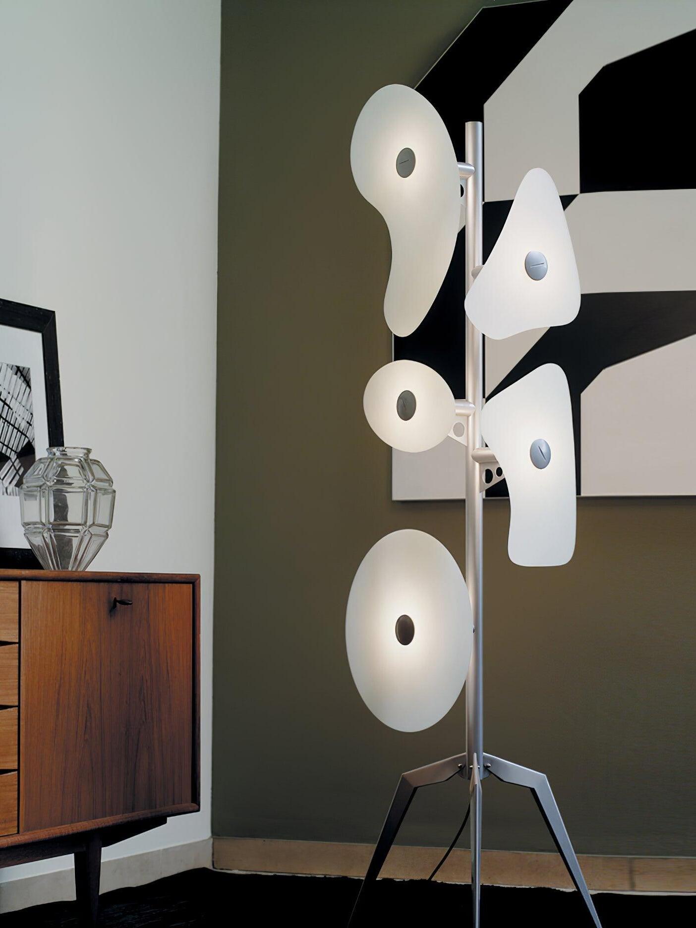 La lampada da terra Orbital è un progetto unico nella storia del design, che prevede una composizione di sagome bianche o multicolori che diffondono nello spazio un segno grafico e luminoso inconfondibile.