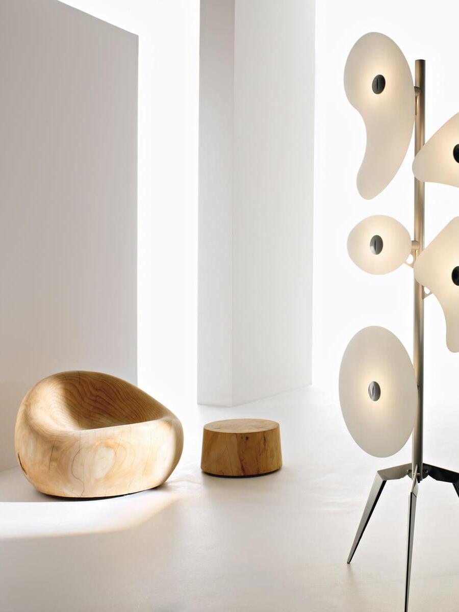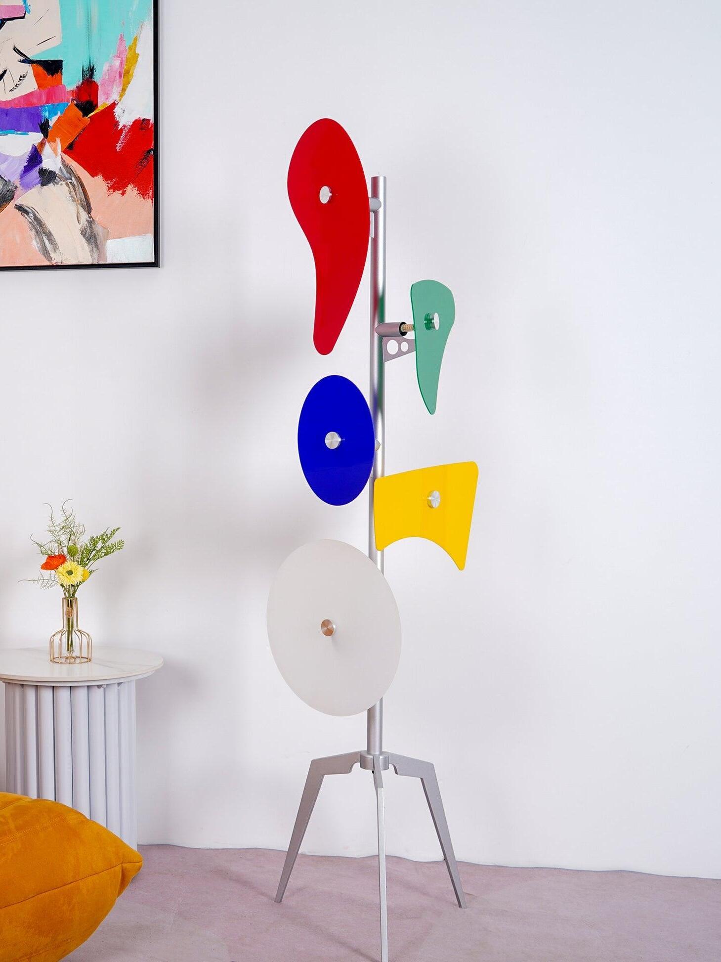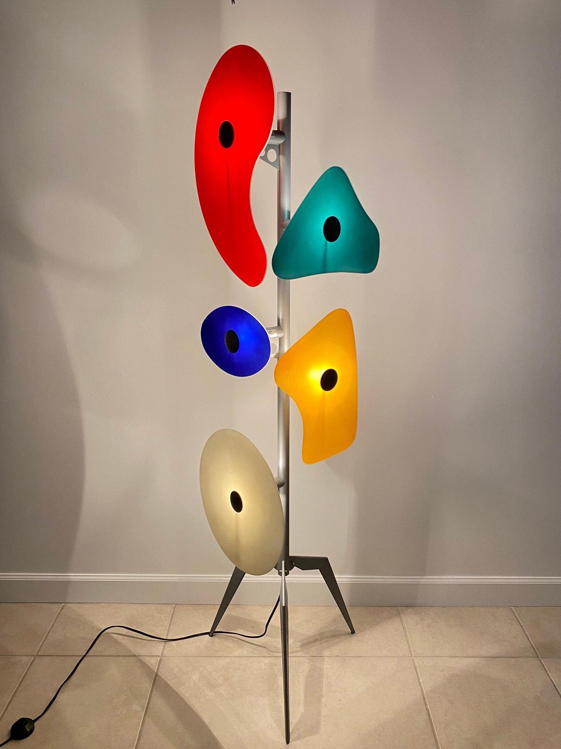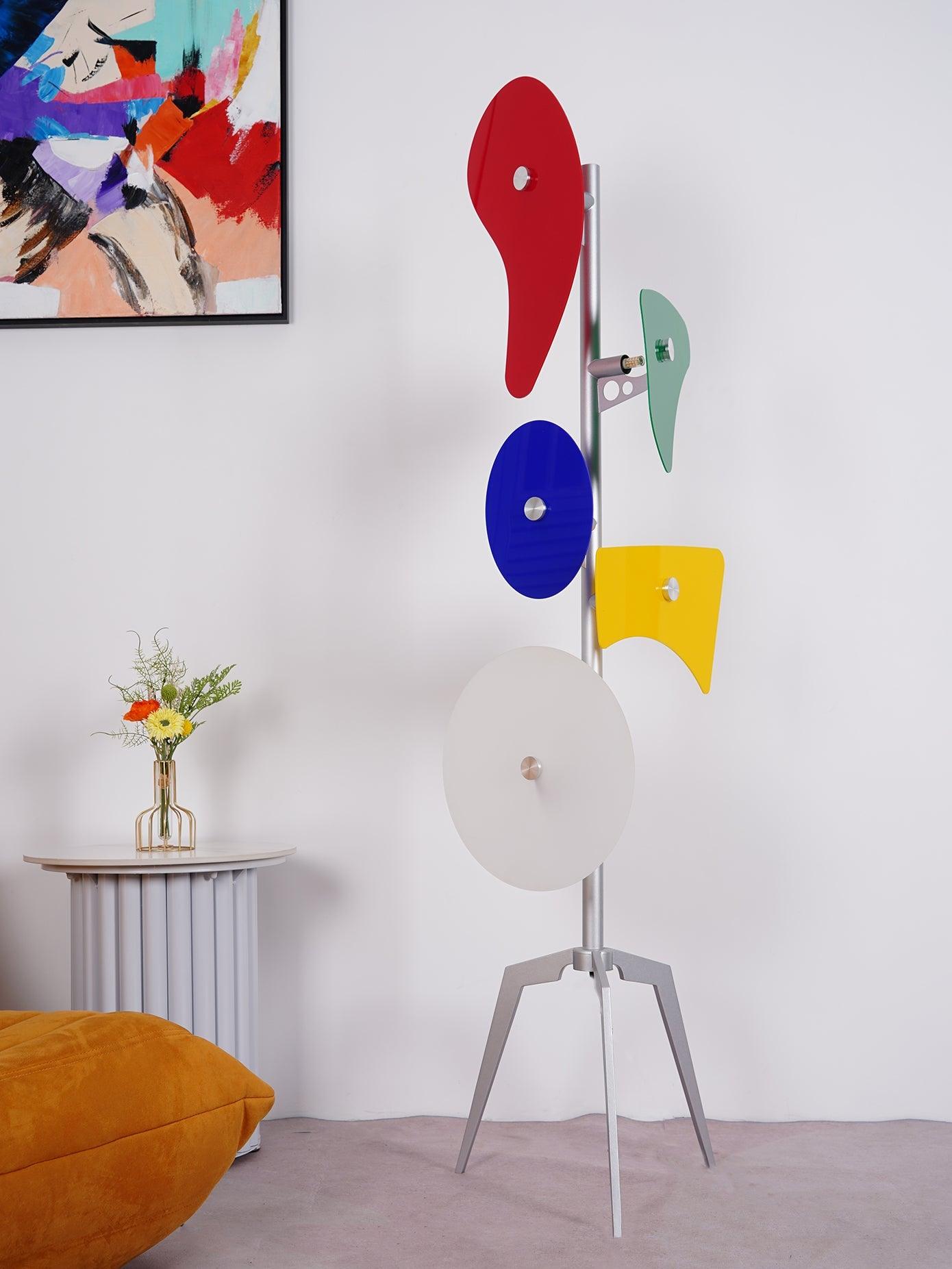 La lampada da terra Orbital è un progetto unico nella storia del design, che prevede una composizione di sagome bianche o multicolori che diffondono nello spazio un segno grafico e luminoso inconfondibile.
