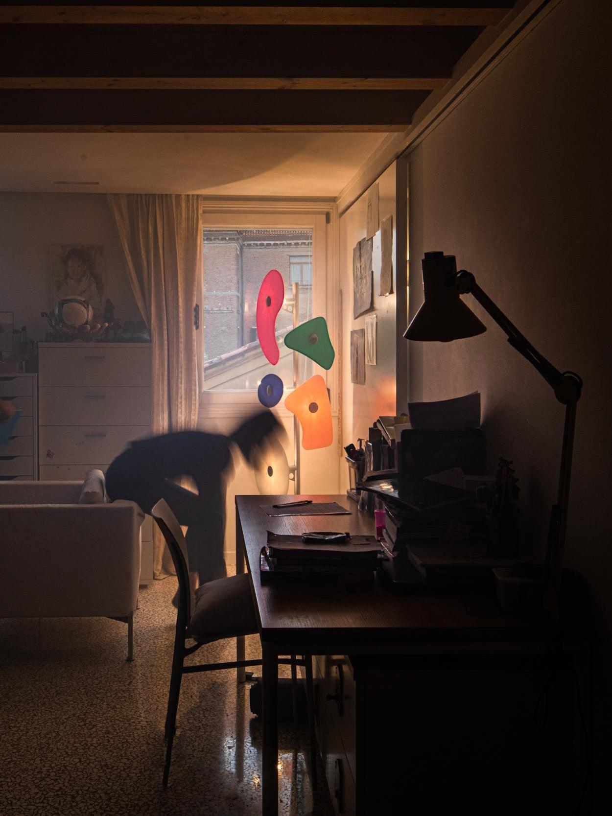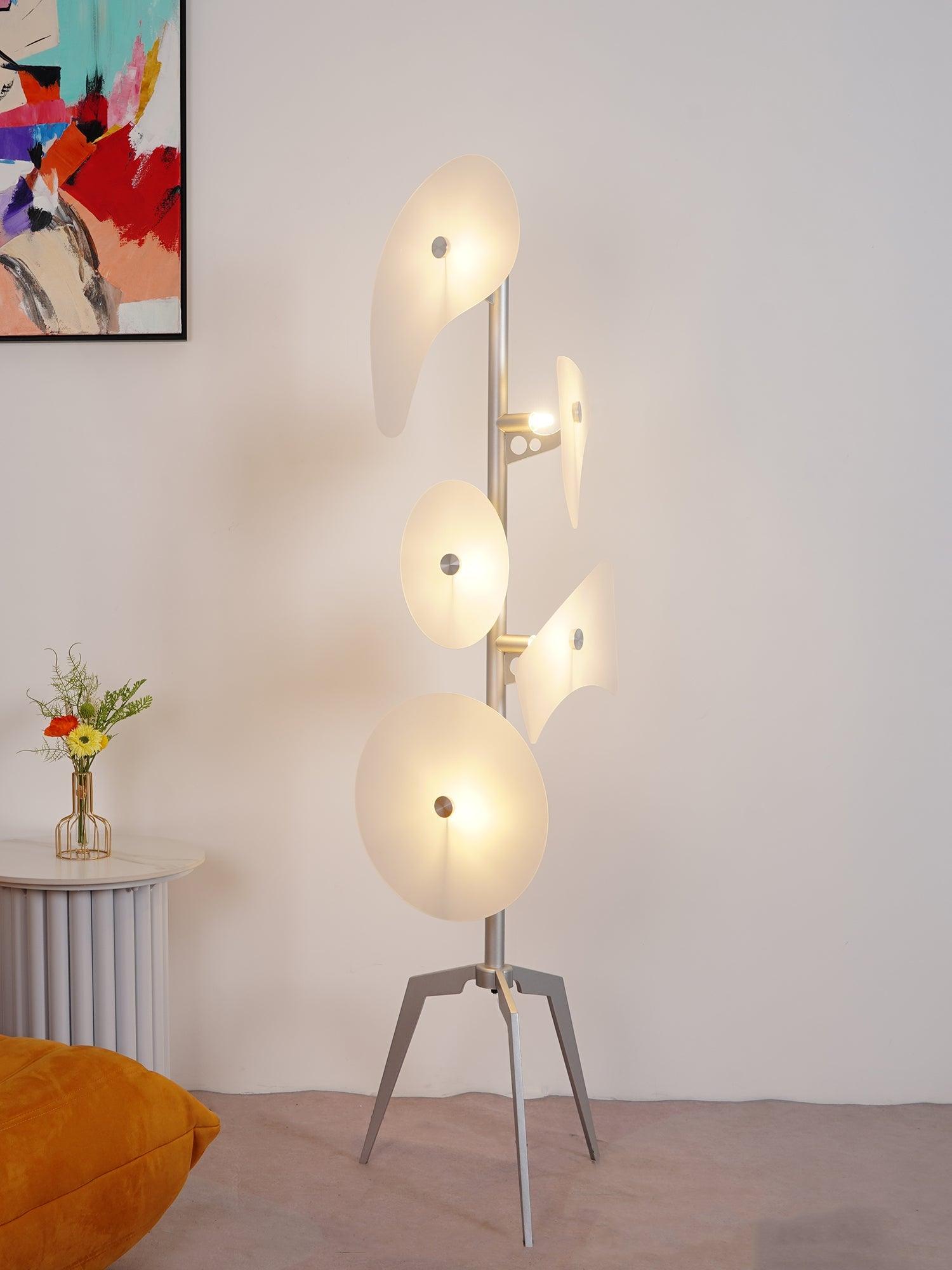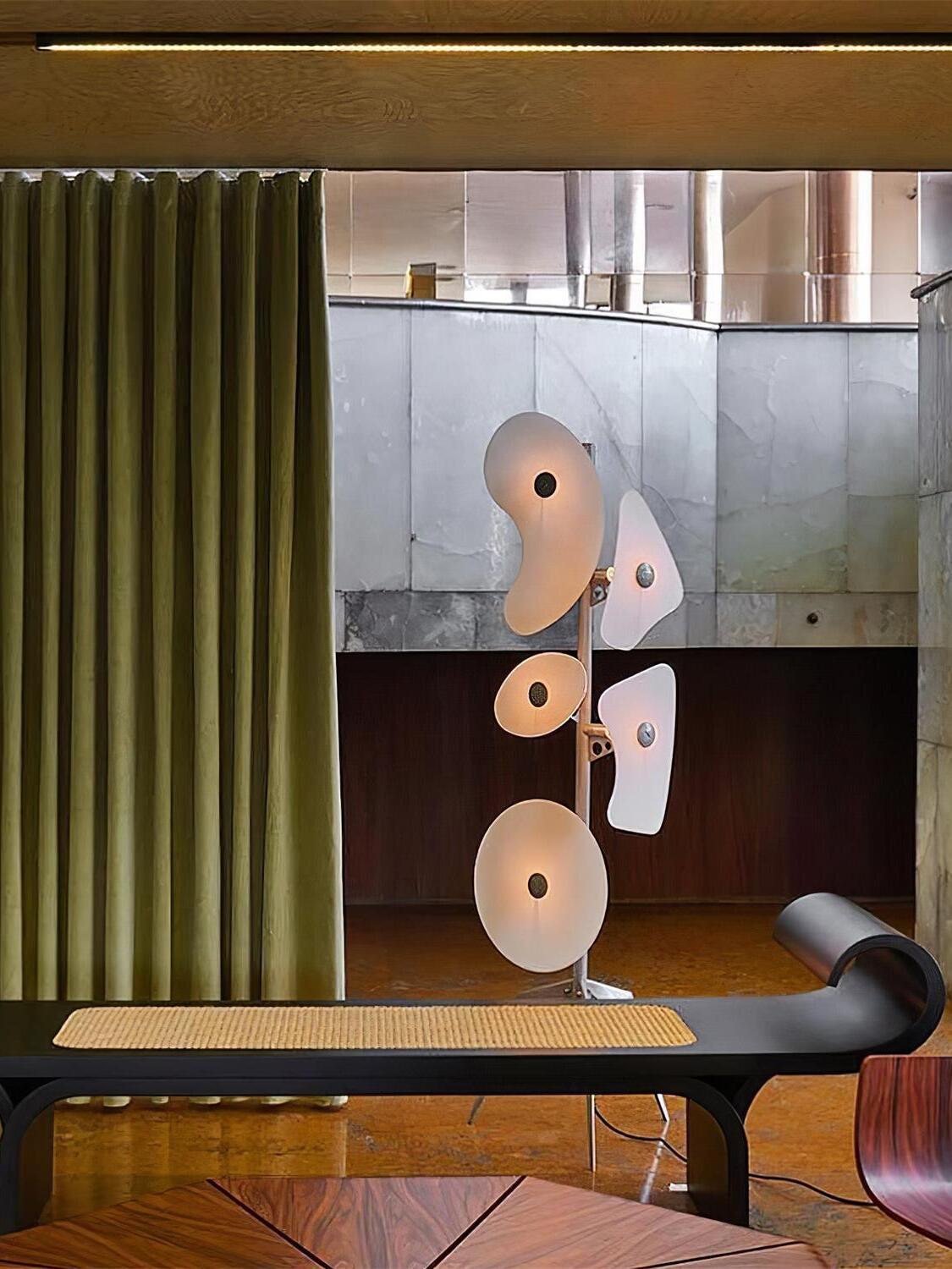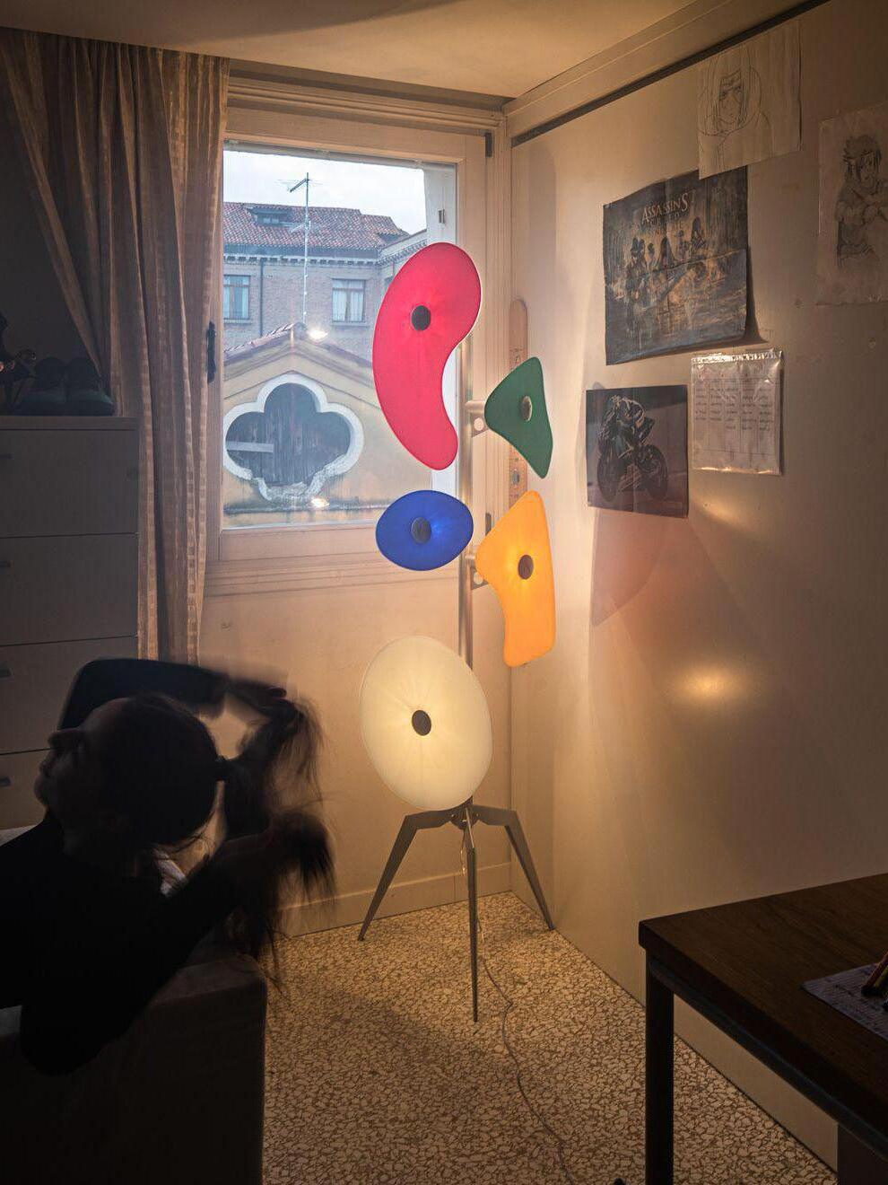 La lampada da terra Orbital è un progetto unico nella storia del design, che prevede una composizione di sagome bianche o multicolori che diffondono nello spazio un segno grafico e luminoso inconfondibile.