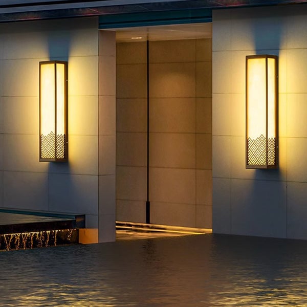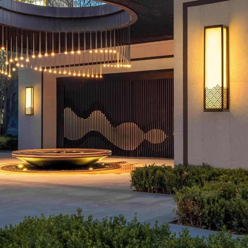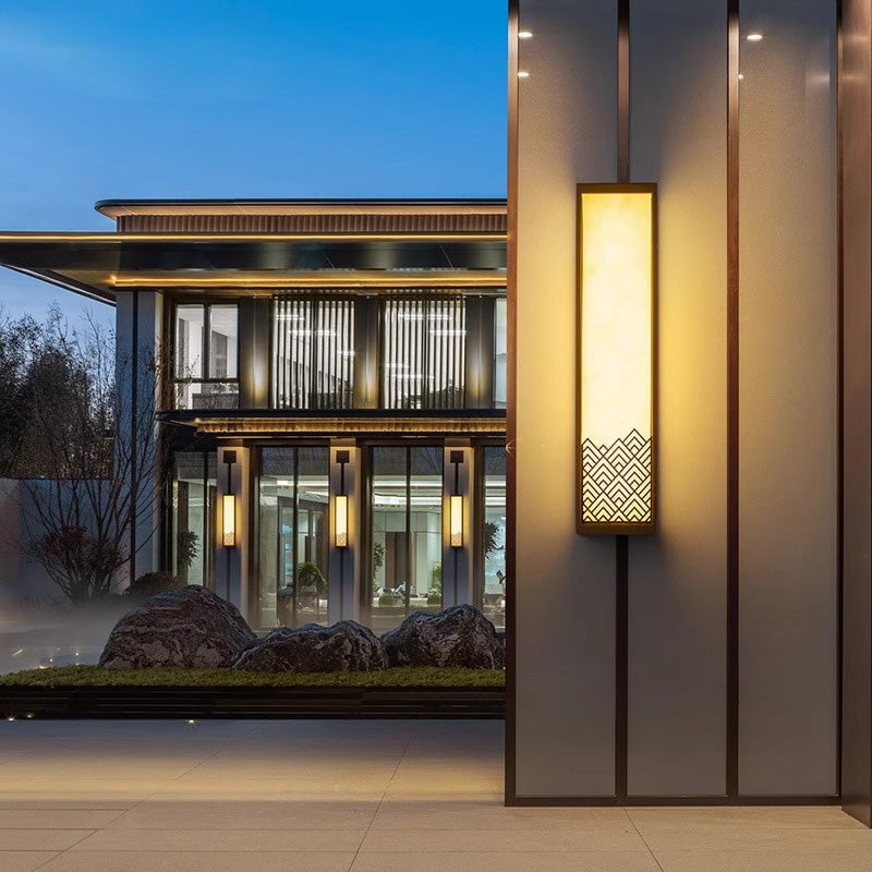Lampada da parete per esterni a LED cubica imitazione marmo impermeabile cinese tradizionale in acciaio inossidabile per giardino