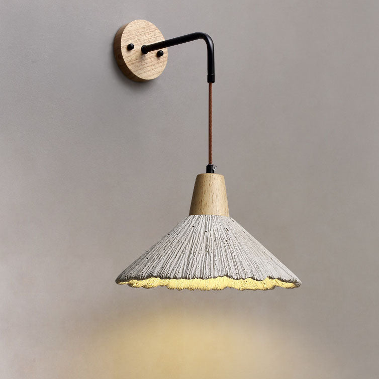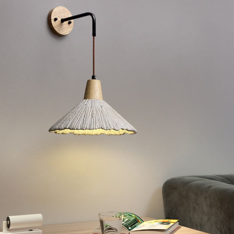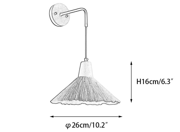 Questa lampada da parete in legno vintage con texture porta un tocco rustico e artigianale in qualsiasi ambiente grazie al suo design unico e ai materiali naturali. La lampada presenta un paralume conico e testurizzato che ricorda il legno organico o la corteccia degli alberi, conferendole un aspetto terroso e fatto a mano. I bordi del paralume sono irregolari, aggiungendo al fascino rustico e migliorando la sua sensazione vintage. Un supporto da parete in legno con un braccio in metallo nero completa il paralume, creando un'armonica fusione di legno e metallo. Perfetta per interni minimalisti, bohemien o rustici, questa lampada da parete fornisce un'illuminazione morbida e calda, rendendola ideale per spazi accoglienti come camere da letto o aree living.