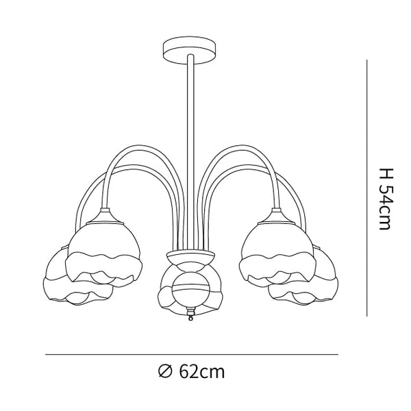 5 hoofden Afmetingen: Dia 62cm x H 54cm / ∅ 24,4″ x H 21,3″
