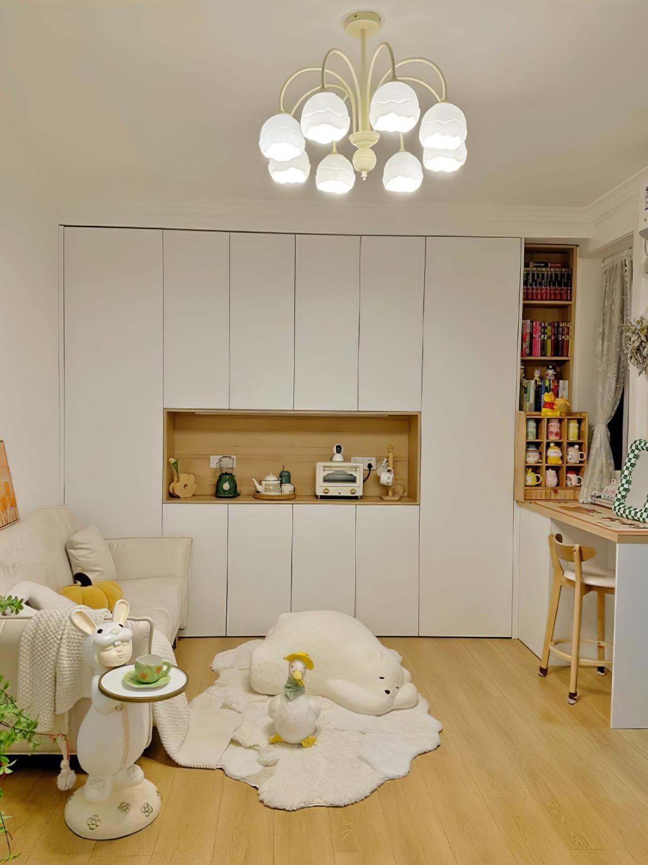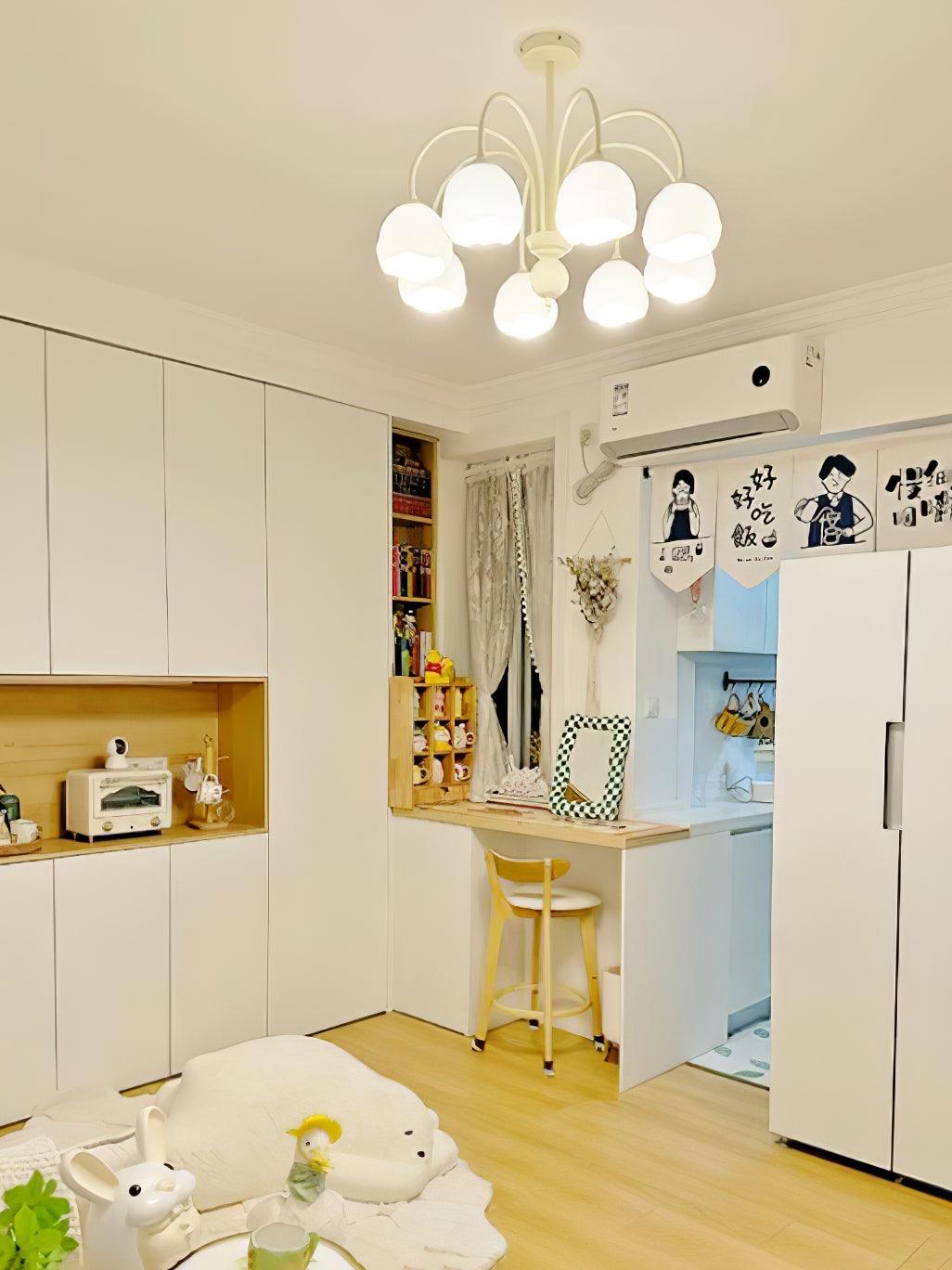 De Creamy Chandelier is een moderne en stijlvolle toevoeging aan elke kamer. Met een glazen kap in een crème en witte gefuseerde stijl, zal het zeker een statement maken. Geniet van de zachte gloed van het ins fashion-geïnspireerde licht, dat een eigentijdse touch aan uw leefruimte geeft.