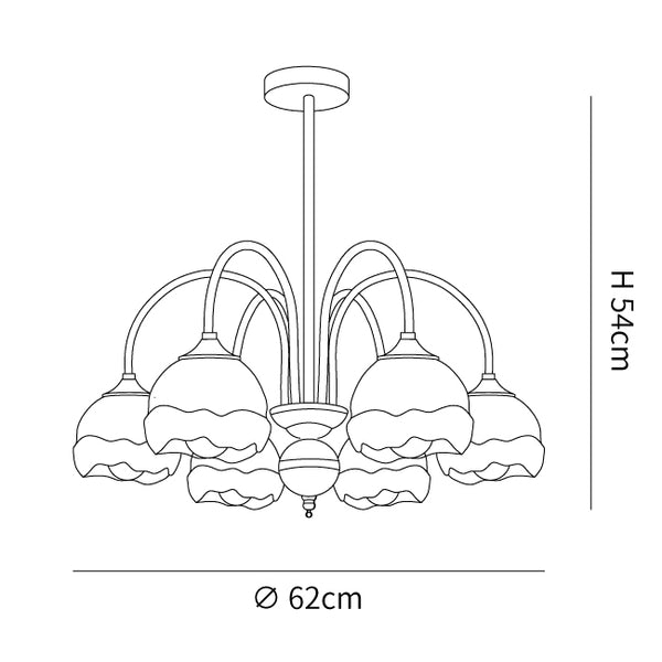 6 hoofden Afmetingen: Dia 62cm x H 54cm / ∅ 24,4″ x H 21,3″