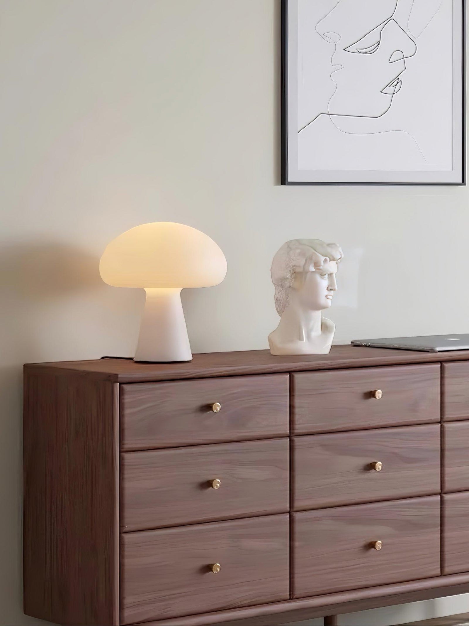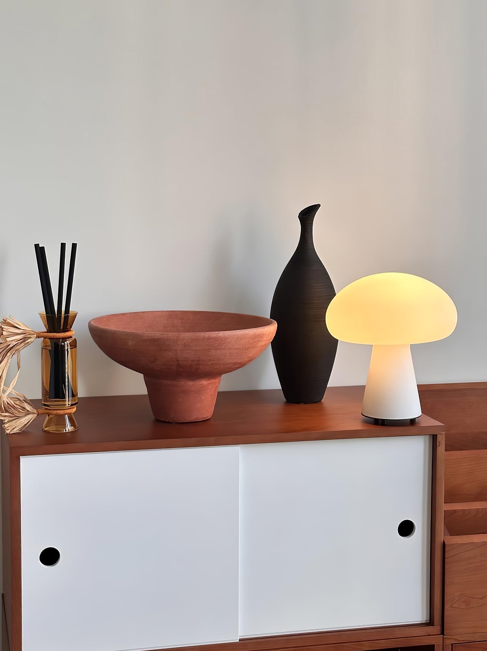 The Obello Portable Mushroom Table Lamp brings a whimsical yet minimalist charm to any space with its iconic mushroom-shaped silhouette. Crafted with a smooth, frosted finish, this lamp emits a warm, ambient glow that enhances cozy atmospheres. Its compact and portable design allows it to be easily moved, making it ideal for creating intimate lighting on bedside tables, desks, or even outdoor settings. The soft curves and organic form add a modern touch while evoking a nostalgic, retro feel, making it a versatile piece that complements both contemporary and classic interiors.