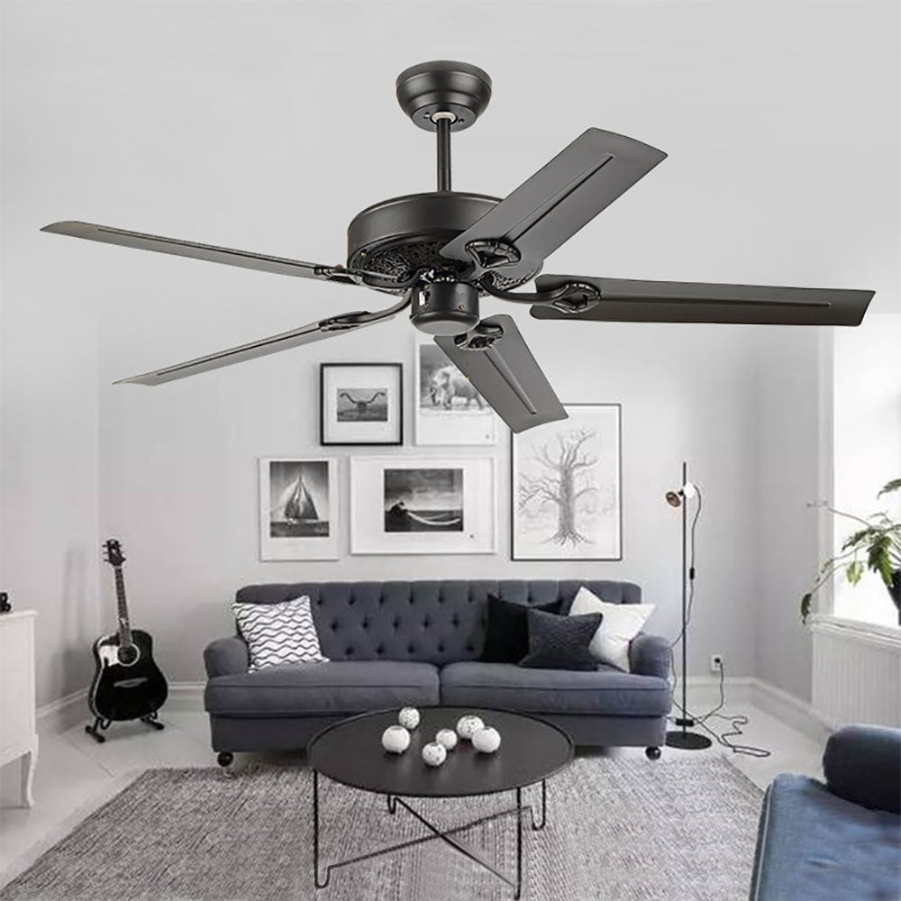 Alessio 5-Blade Industrial DC Ceiling Fan, Black, Summer, 51''