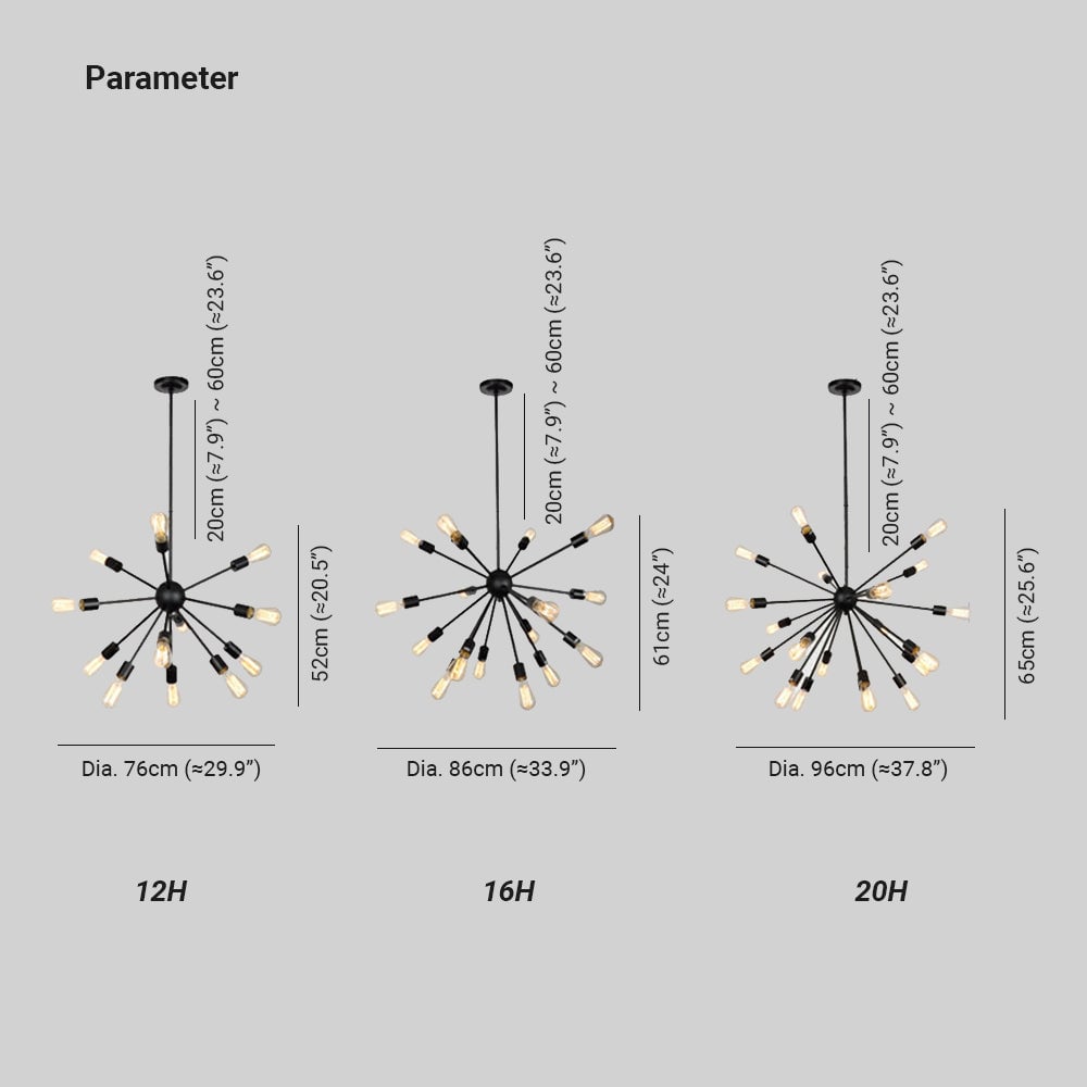 - The captivating arrangement of lights in a celestial-inspired design adds a touch of avant-garde flair to your space. The sputnik linear lights emanate in all directions, creating a mesmerizing play of light and shadow. Let this chandelier be the star of your decor, bringing a celestial vibe that transcends the ordinary and elevates your lighting experience to new heights.