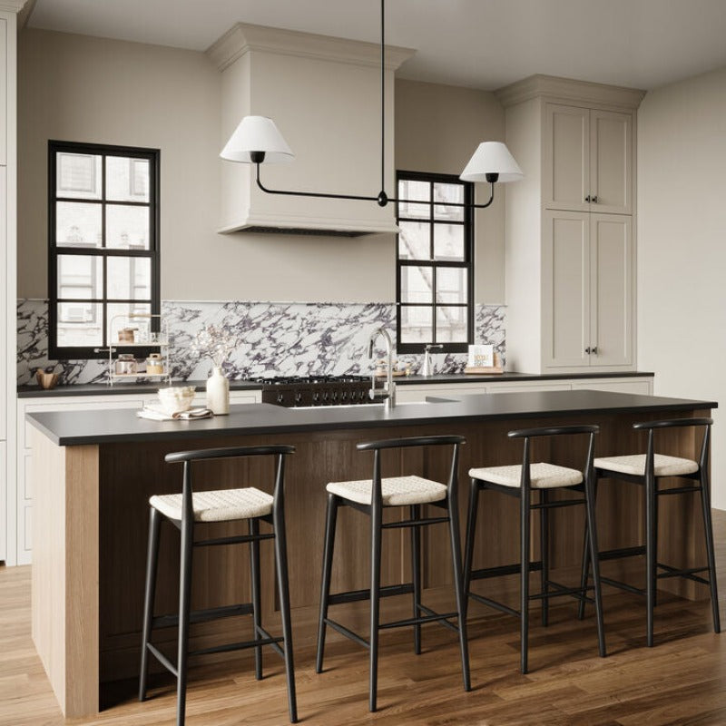 - Dive into a world of visual contrast with the Alessio Chandelier. The pristine white hue of the lamps dances in harmony with the bold black metal, creating a captivating interplay of colors that transcends the ordinary. This chandelier is not just a source of light; it's a visual symphony that elevates the ambiance of any space.?