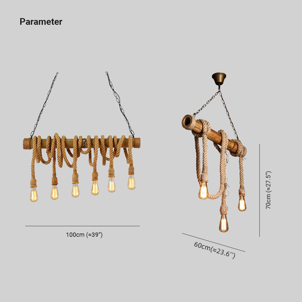 - The twisted linen rope structure of the lamp not only adds a retro effect to it, but also creates a visually interesting shape. The dynamic interaction of the string forms an exciting silhouette that attracts the eye. Its unique shape is a conversation starter, making it a distinctive addition to any room. You can choose between a 6- or 3-light version, allowing you to customize the lighting according to your needs. The twisted canvas rope structure of the lamp gives it a retro and fascinating aesthetic that makes it extraordinary creative lighting.