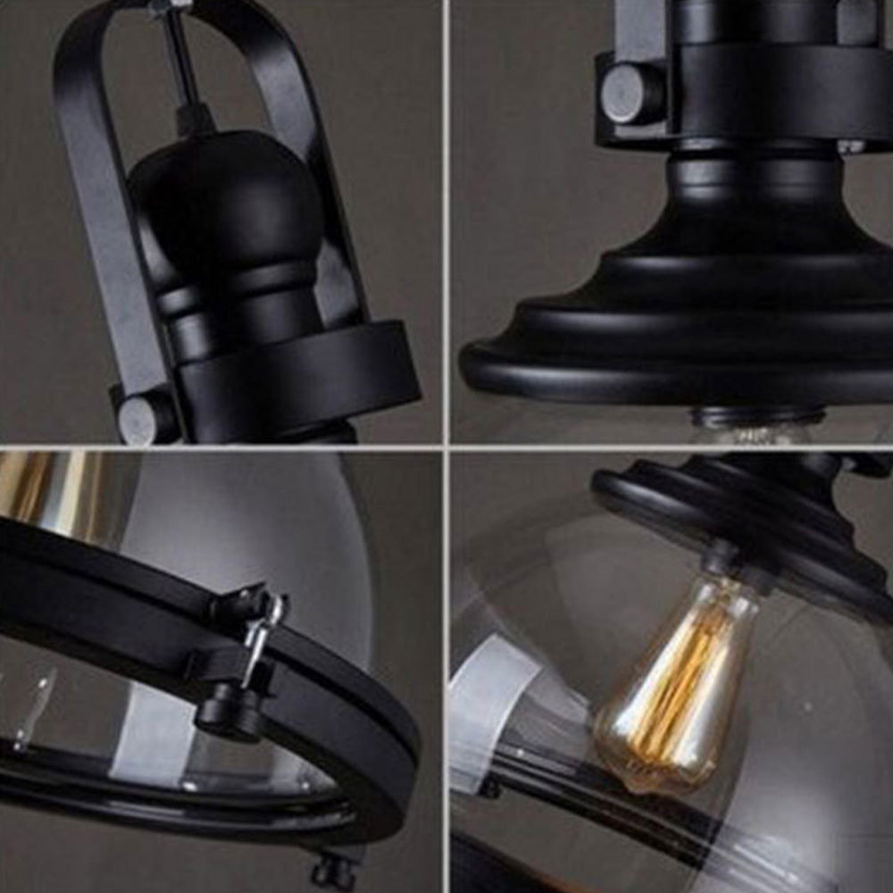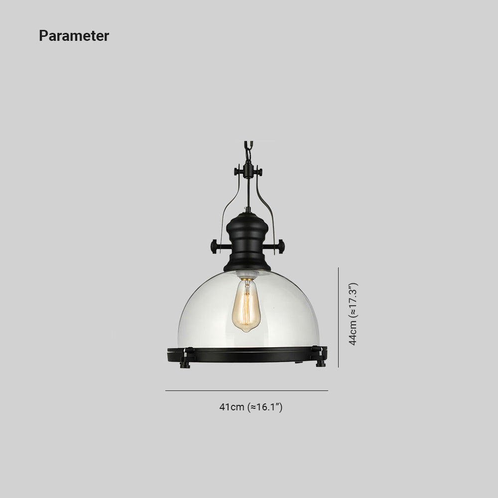 - The pendant lamp adopts a hemispherical design, adopts a transparent glass lampshade, and is paired with a black lamp holder, resulting in a simple and vintage appearance.