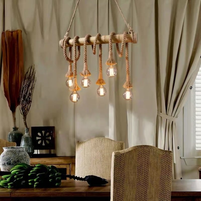 - This pendant light is made of high-strength wood and rope as the main material, which is delicate texture and sturdy.