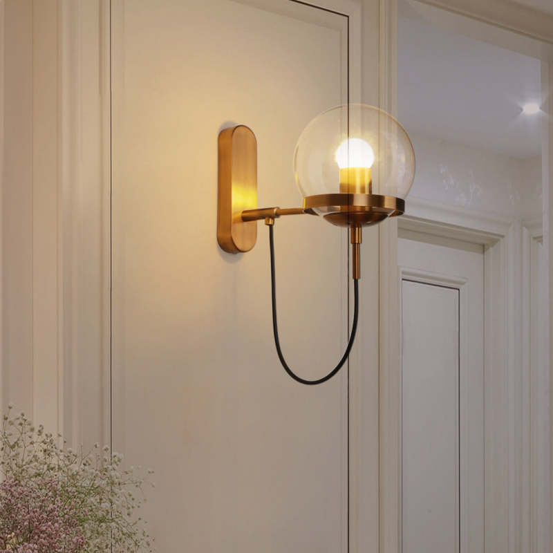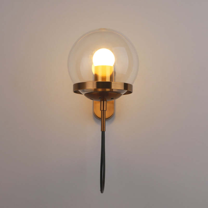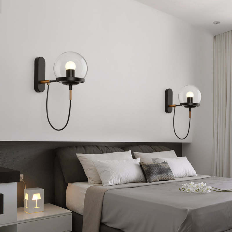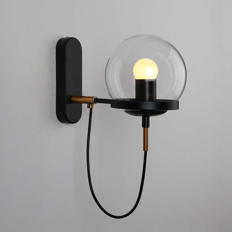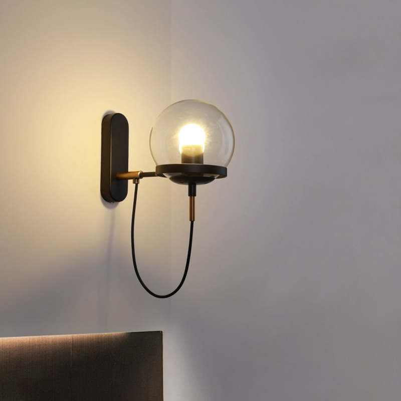 Alessio Rustic Retro Glass Globe Wall Lamp, Black/Bronze