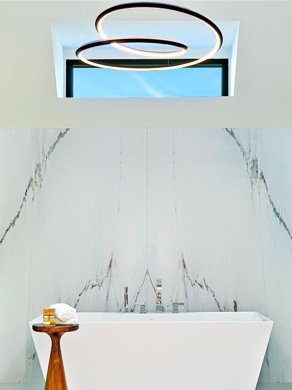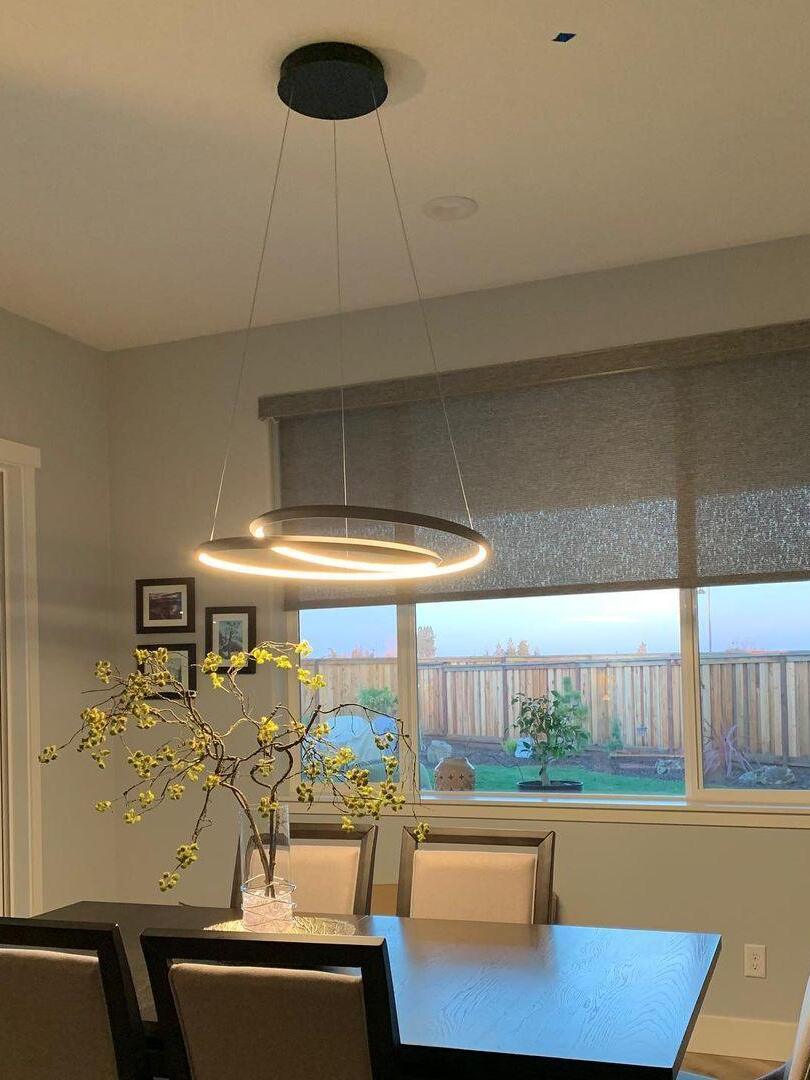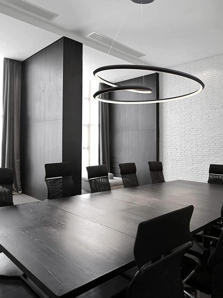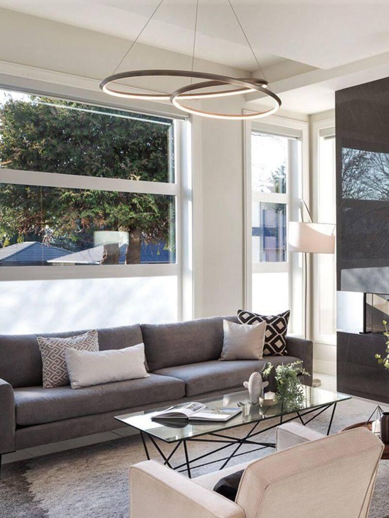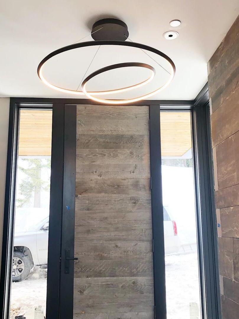 The Ampersand chandelier provides a reductive aesthetic focus but accomplished with a poetic flair. A contemporary eye catching piece that features a Clear round aesthetic glass with Opal diffuser housed by an extruded and rolled triangular aluminum loop.