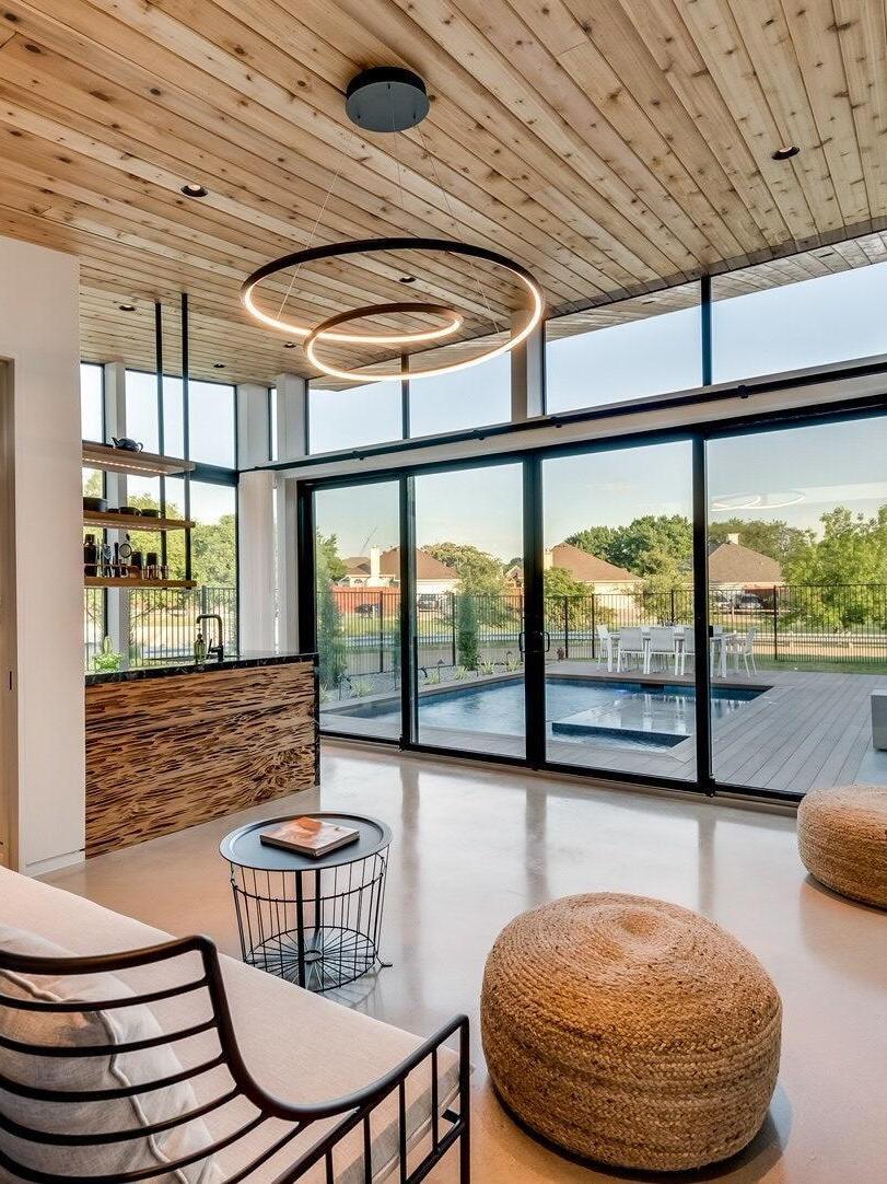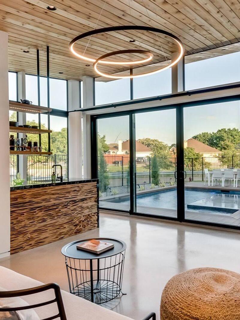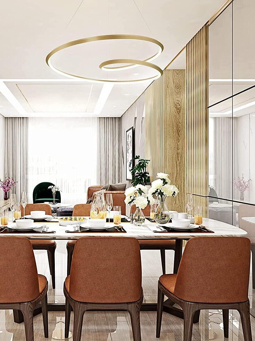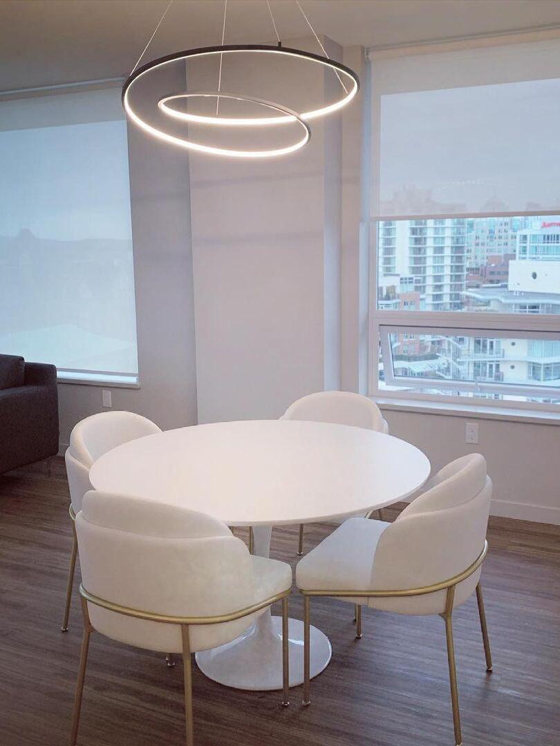 The Ampersand chandelier provides a reductive aesthetic focus but accomplished with a poetic flair. A contemporary eye catching piece that features a Clear round aesthetic glass with Opal diffuser housed by an extruded and rolled triangular aluminum loop.
