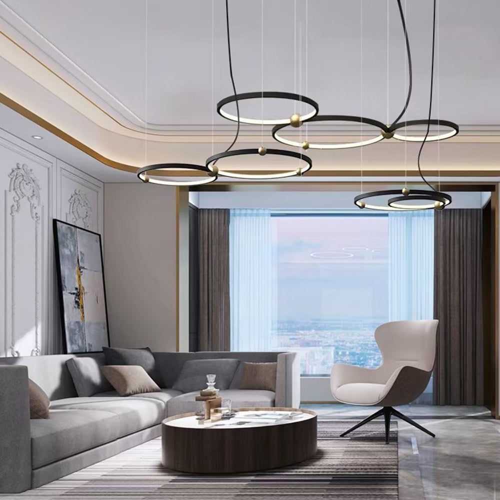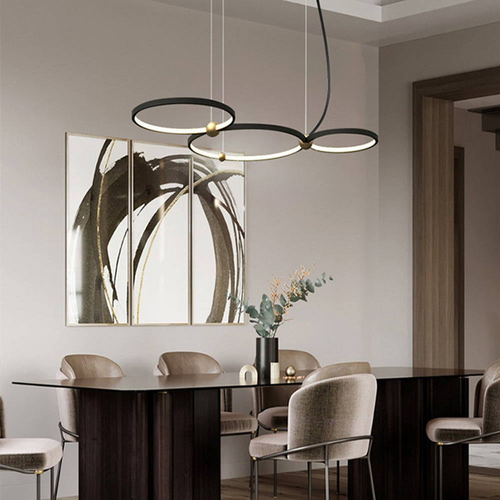 The pendant light features a round frame design,and the multiple lights arrangement adds a sense of design, creating a unique artistic atmosphere.There are different combinations to choose from