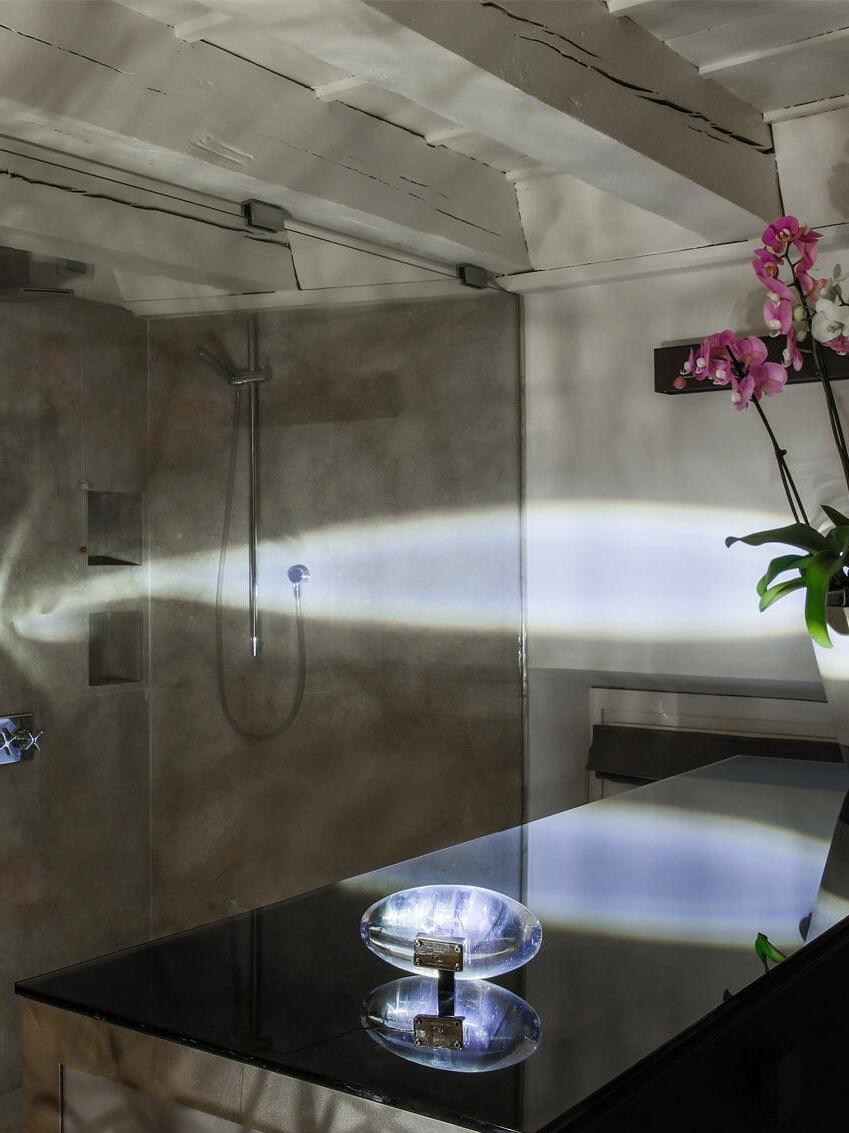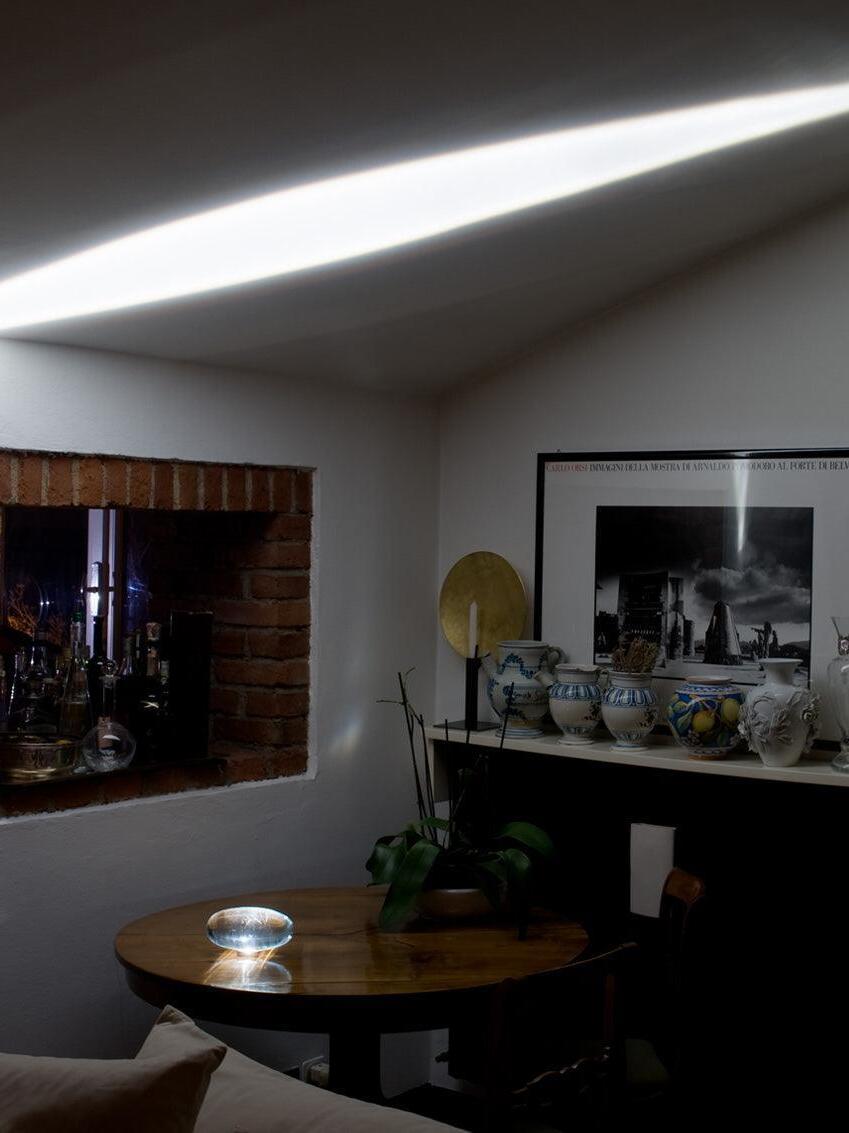 It all began with a trip to India, where he came into contact with the intensity of a culture that combines silence and chaos, spirituality and misery. Here designer discovered holy oval stones and decided to recreate the same shape using glass. The name ‘Atman’ comes from a Sanskrit word meaning “soul”.
