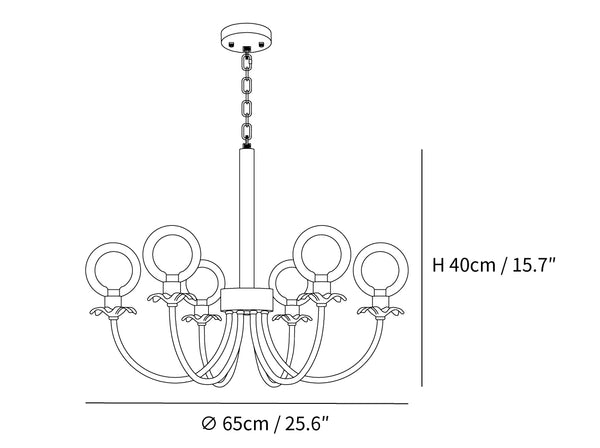 6 heads Size: Dia 65cm x H 40cm / ∅ 25.6″ x H 15.7″