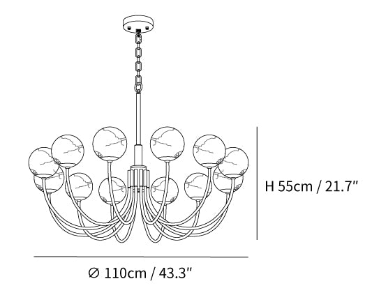 12 Heads Size: Dia 110cm x H 55cm / ∅ 43.3″ x H 21.7″