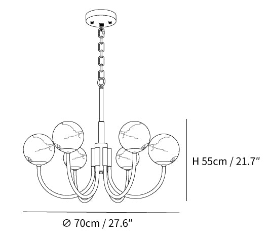 6 Heads Size: Dia 70cm x H 55cm / ∅ 27.6″ x H 21.7″