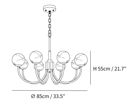 8 Heads Size: Dia 85cm x H 55cm / ∅ 33.5″ x H 21.7″