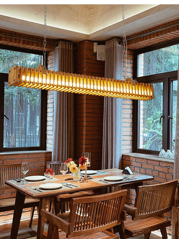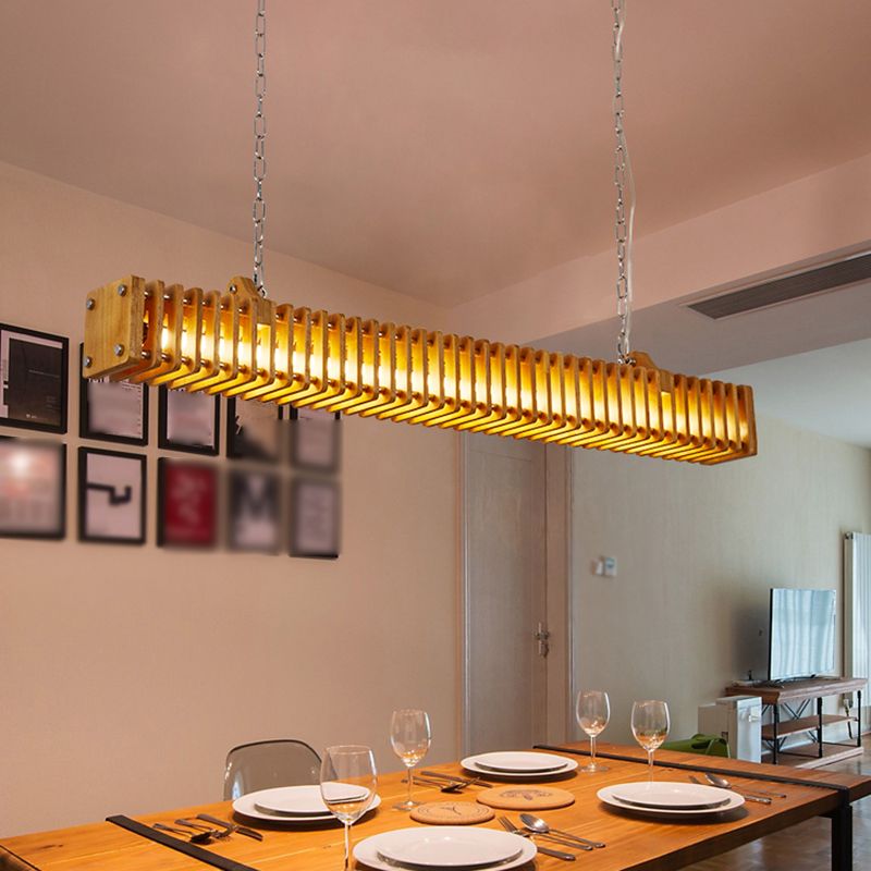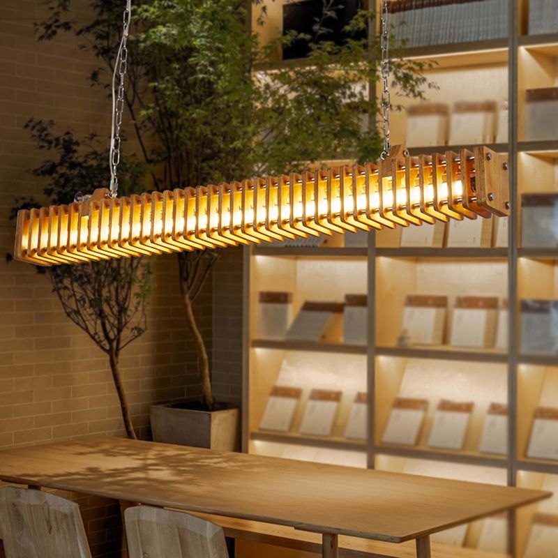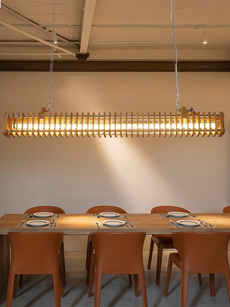 Austin Rectangular LED Pendant Light, Wood & Metal, 47.5"