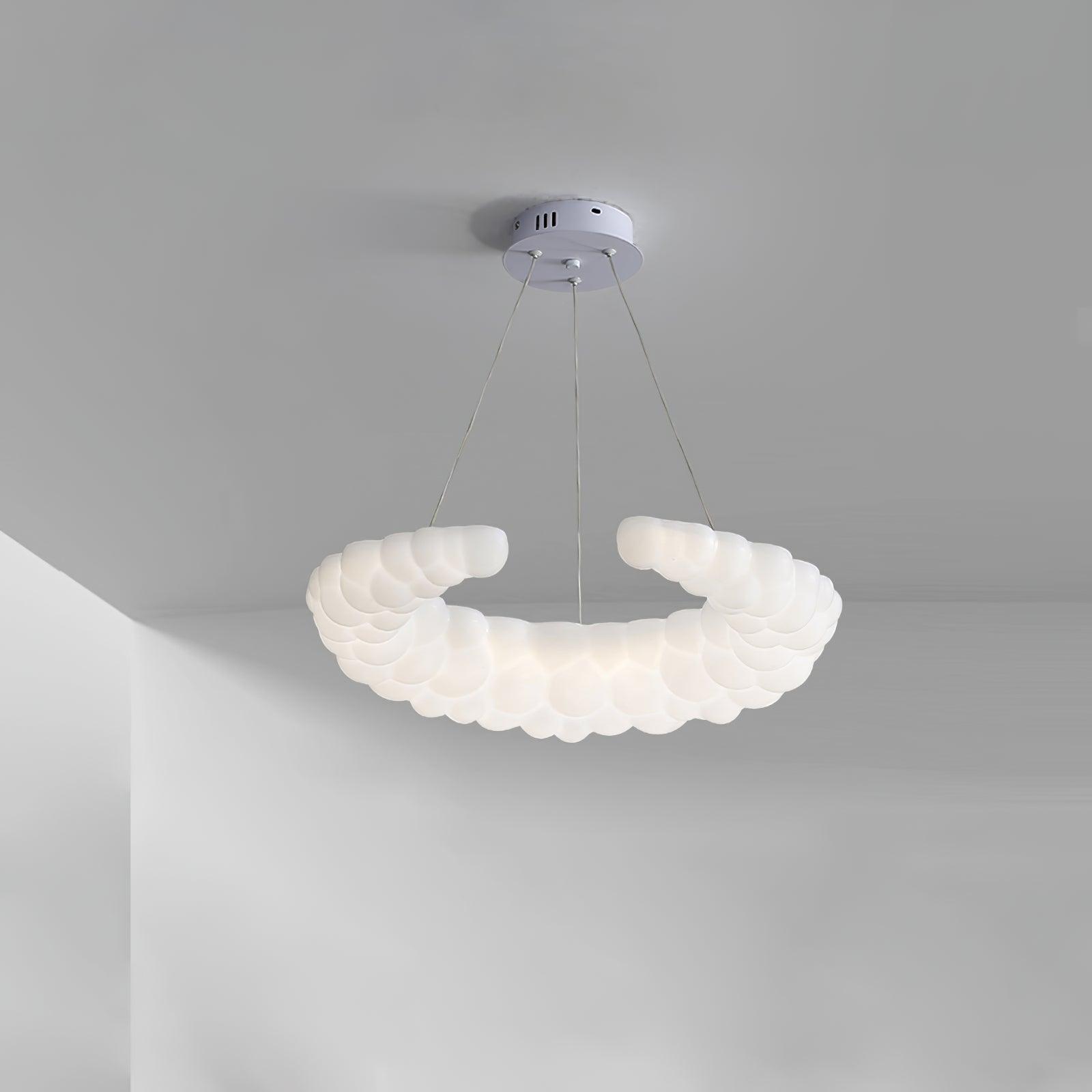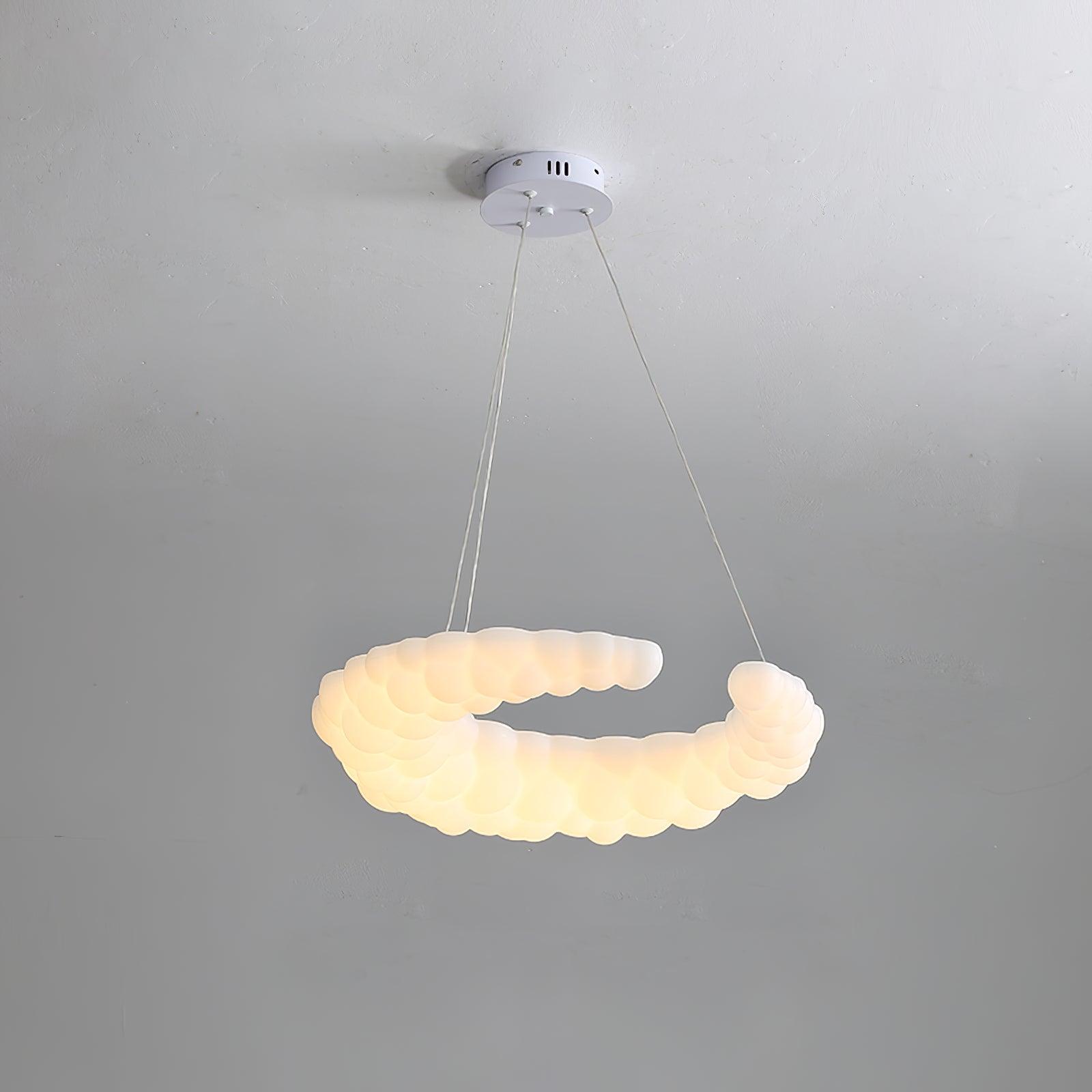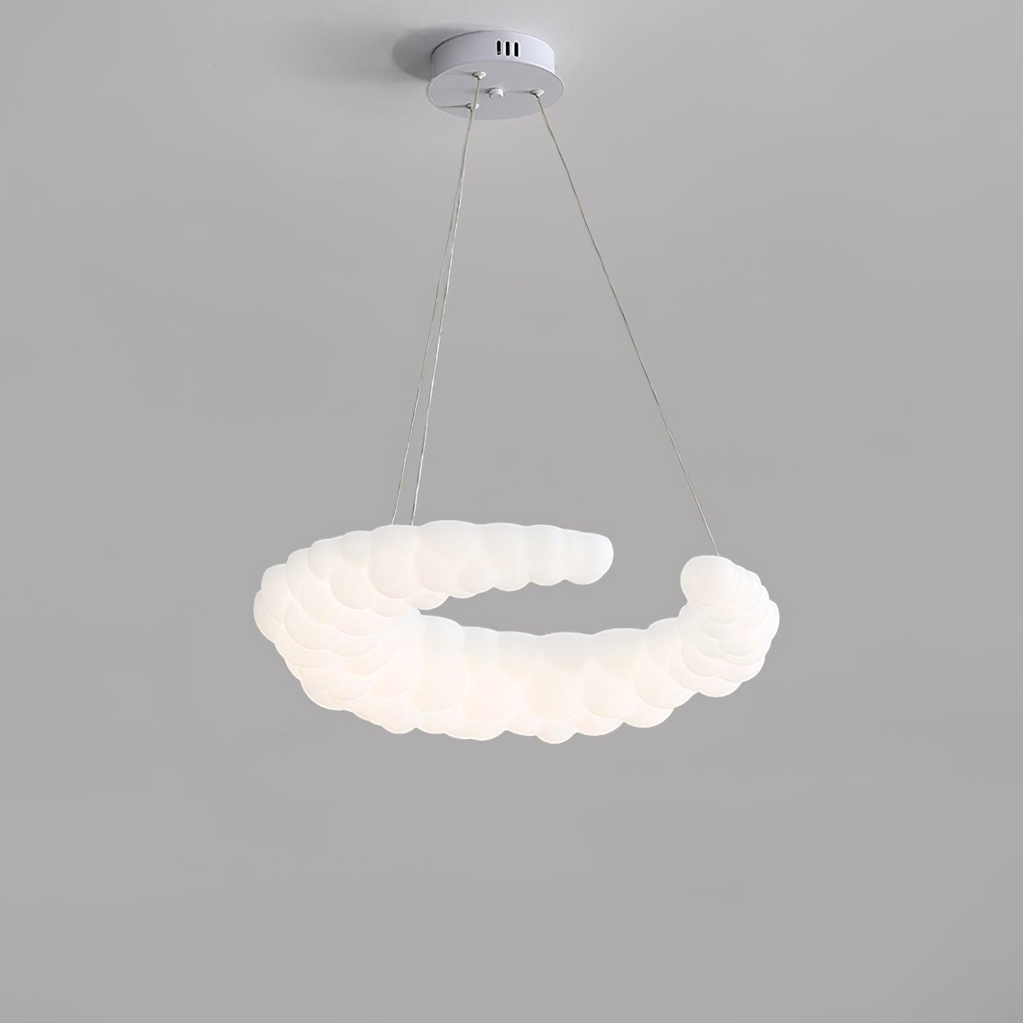 The contemporary pendant in white finishes can go with any style of decor The Moon-shaped shade resembles the aura in the air. Furthermore, the pendant light is a halo-shaped ring as well as the bulbs that are LED built into the frame, brimming with sentimental love. hanging wire can be adjusted and you can position the light fixture wherever you want in your home.