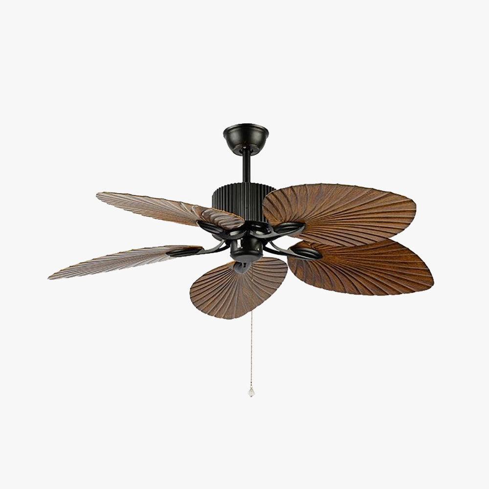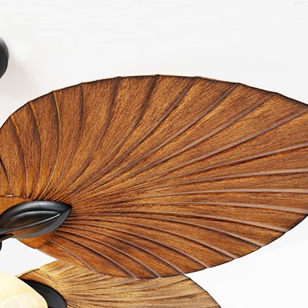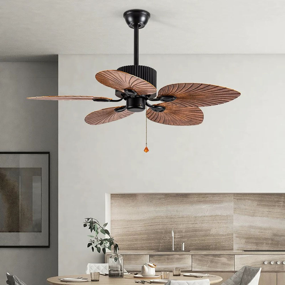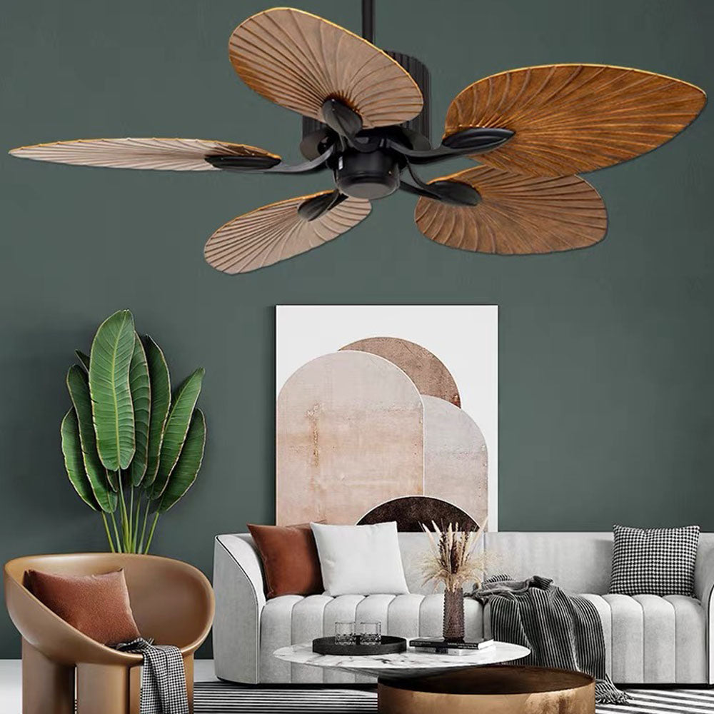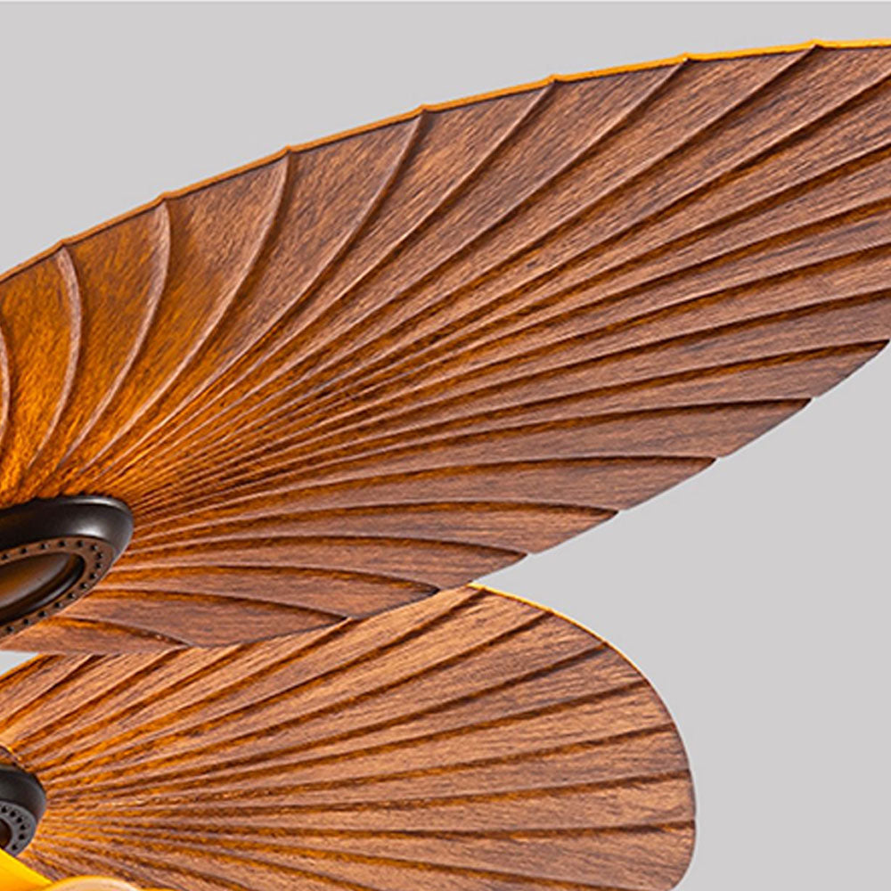 - The unique shape of the Retro and Vintage ceiling fan is inspired by nature's own design - the leaf. Its fan blades are delicately patterned to mimic the graceful curves and lines of leaves, infusing your living space with an organic and refreshing ambiance. The leaf-inspired design not only adds character but also enhances the airflow, creating a gentle breeze reminiscent of a serene summer day, making it an ideal choice for a variety of rooms in your home.