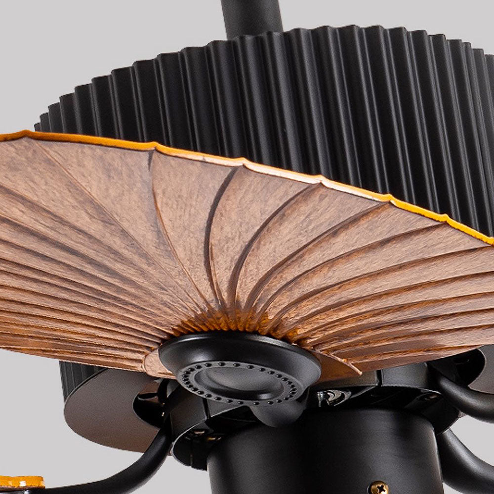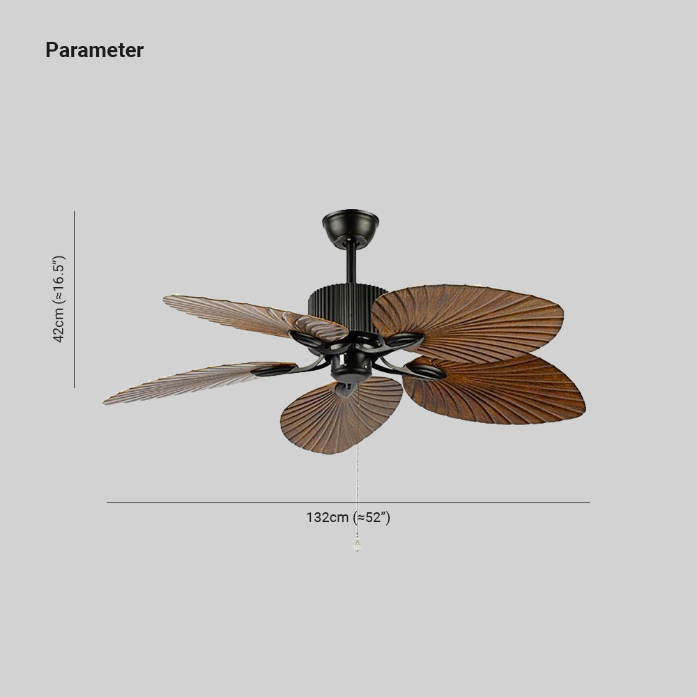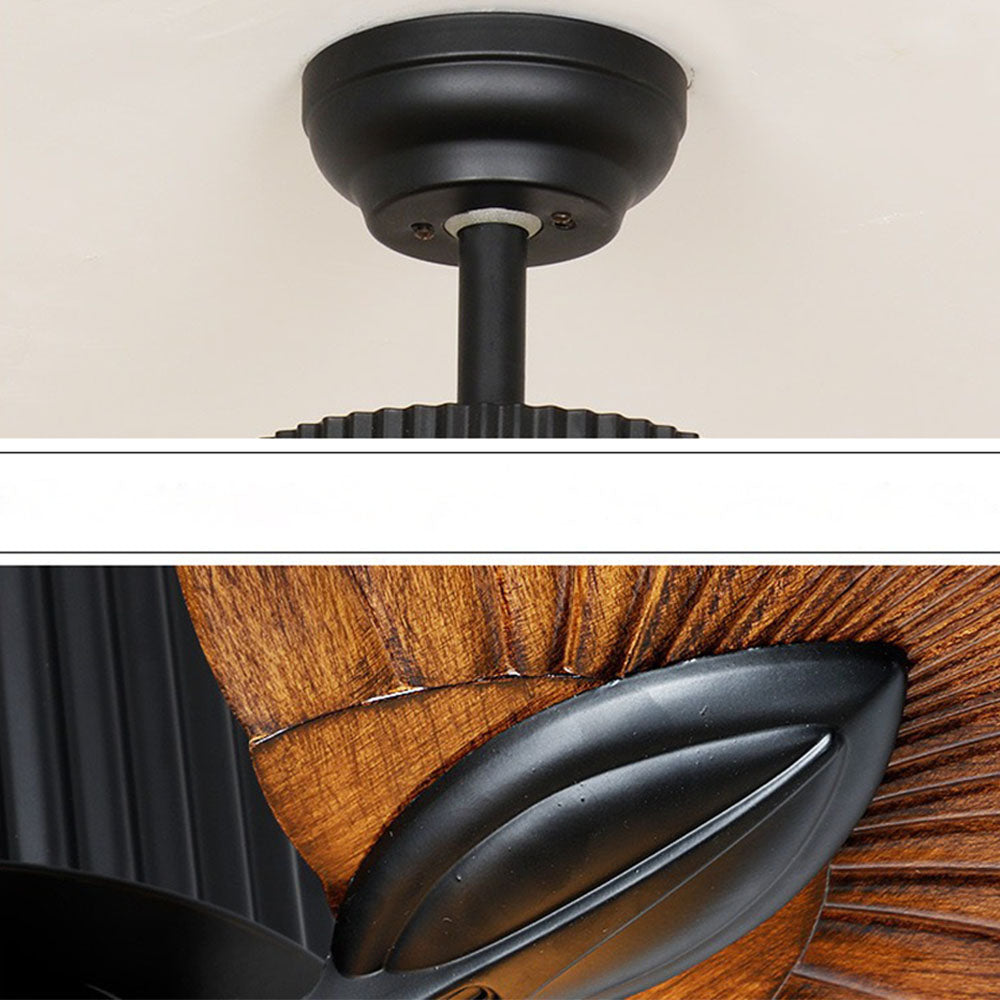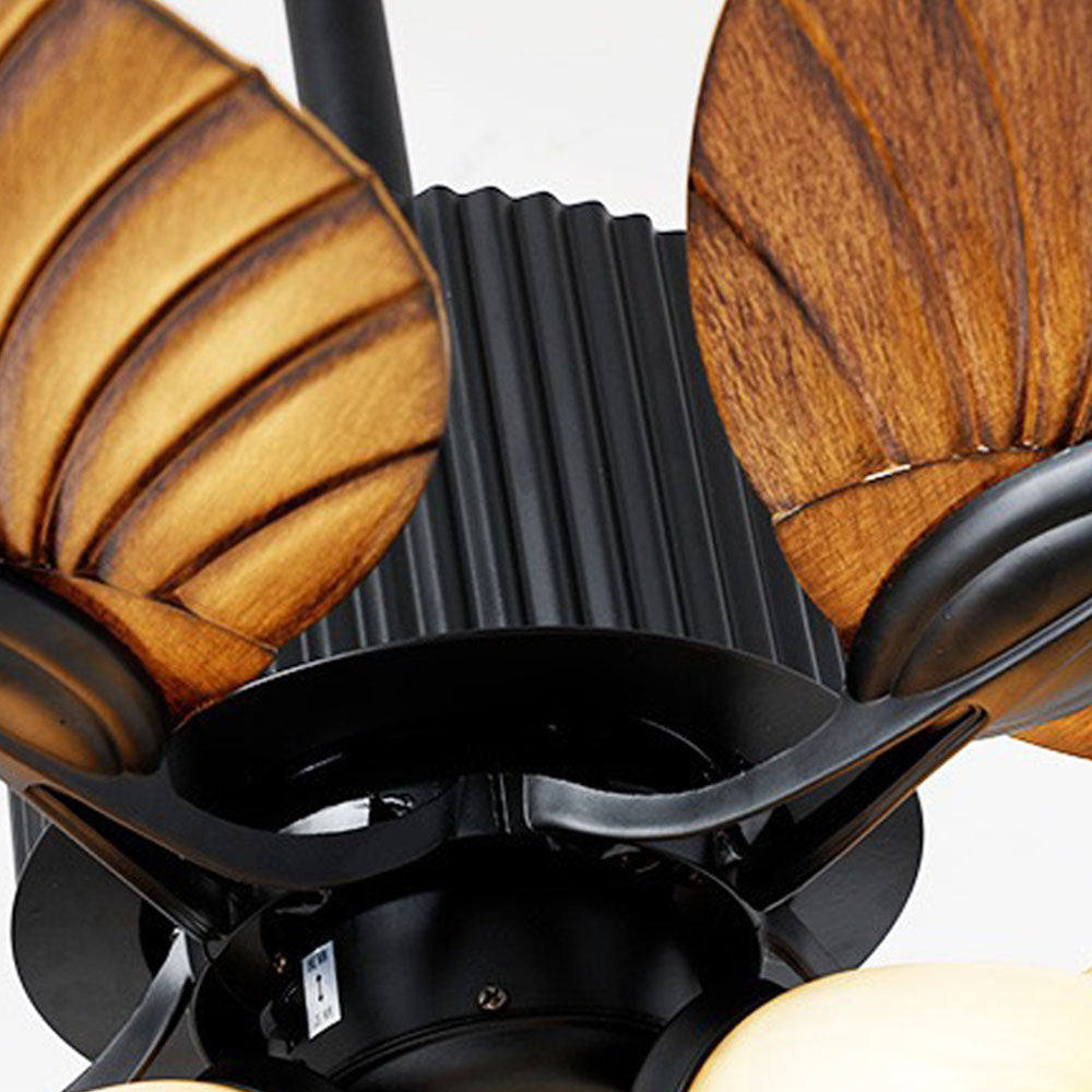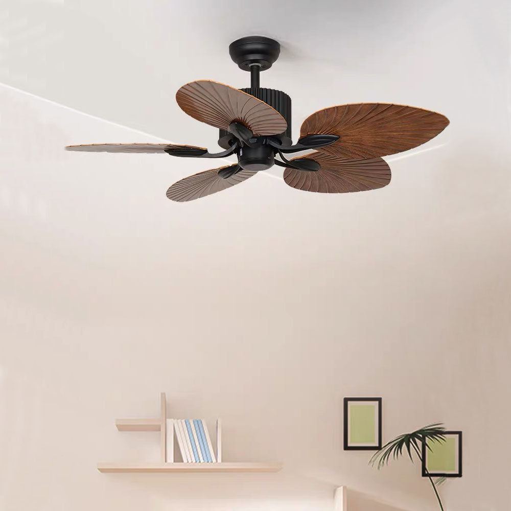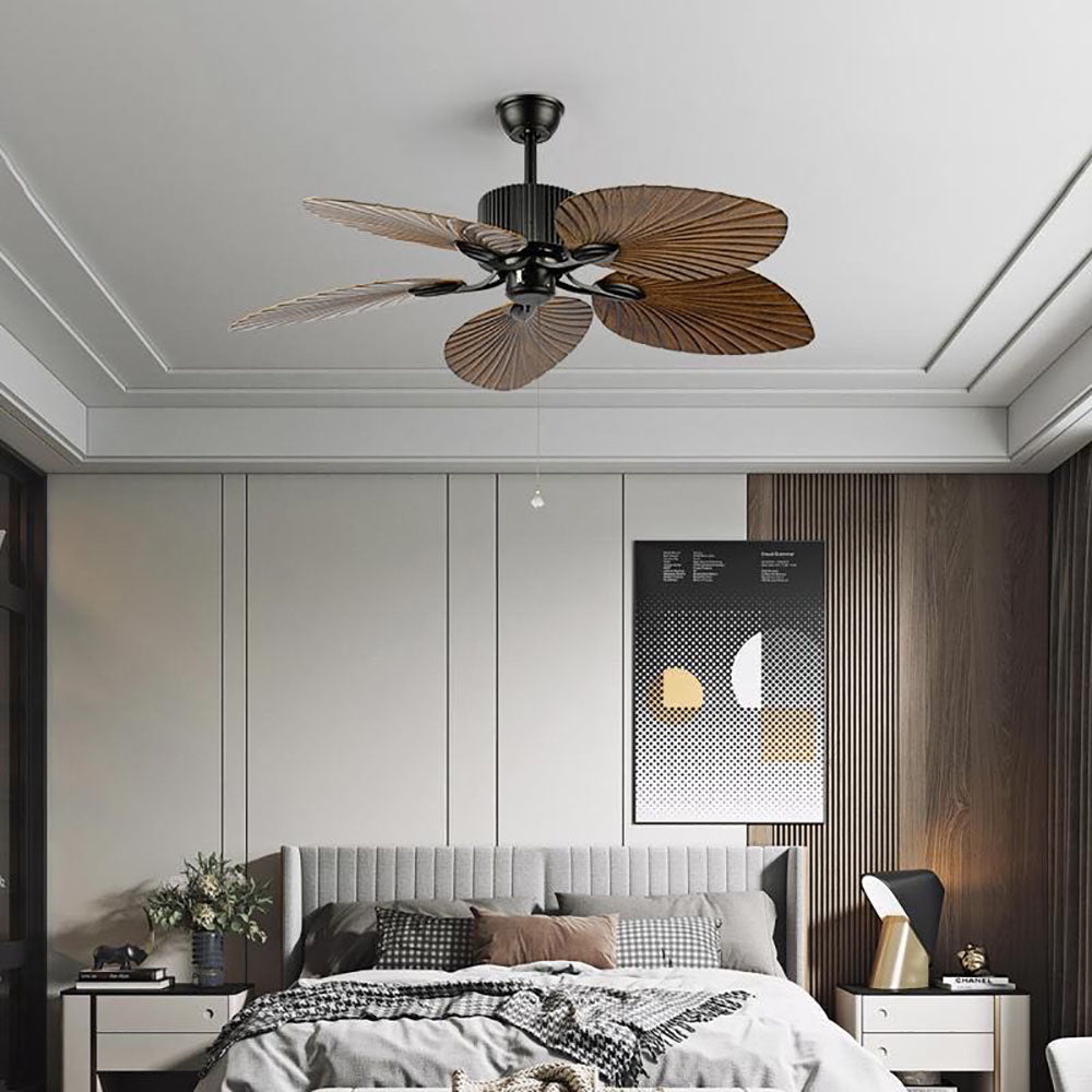- The unique shape of the Retro and Vintage ceiling fan is inspired by nature's own design - the leaf. Its fan blades are delicately patterned to mimic the graceful curves and lines of leaves, infusing your living space with an organic and refreshing ambiance. The leaf-inspired design not only adds character but also enhances the airflow, creating a gentle breeze reminiscent of a serene summer day, making it an ideal choice for a variety of rooms in your home.
