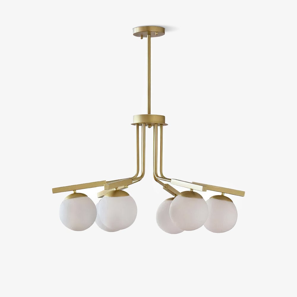 The Bonnie Chandelier radiates blown white glass globes flanked by American hand polished brass. Equally perfect for shorter bedroom ceilings and over dining room tables, the Bonnie Chandelier adds a hint of classic Mid-Century to your design.
