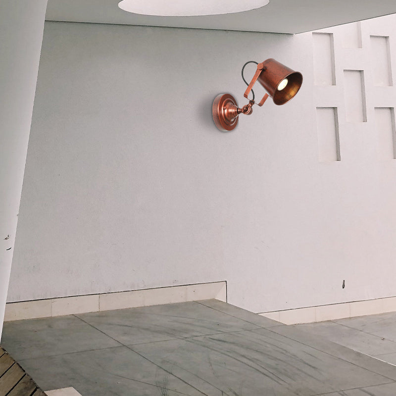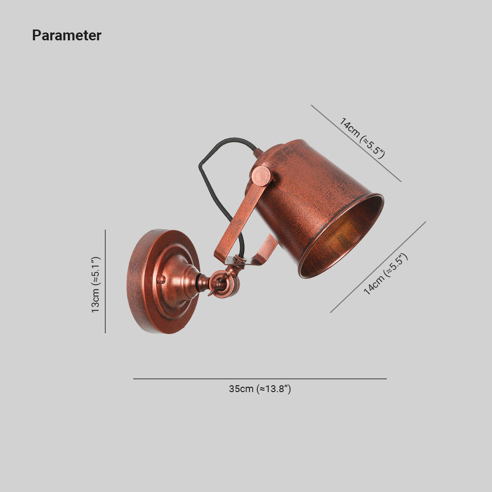 Brady Modern Bucket Metal Adjustable Wall Lamp, Black/Rust