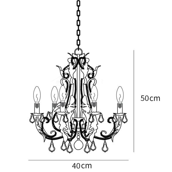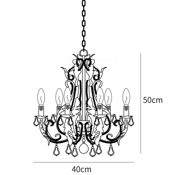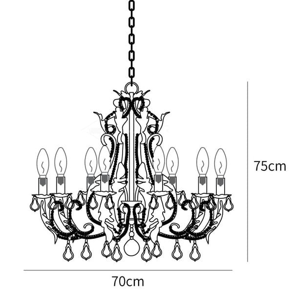 With a mix of scrolling arms, glittering crystal beads and delicate botanical accents, our chandelier exhibits equal amounts of genteel sweetness and unabashed grandeur.