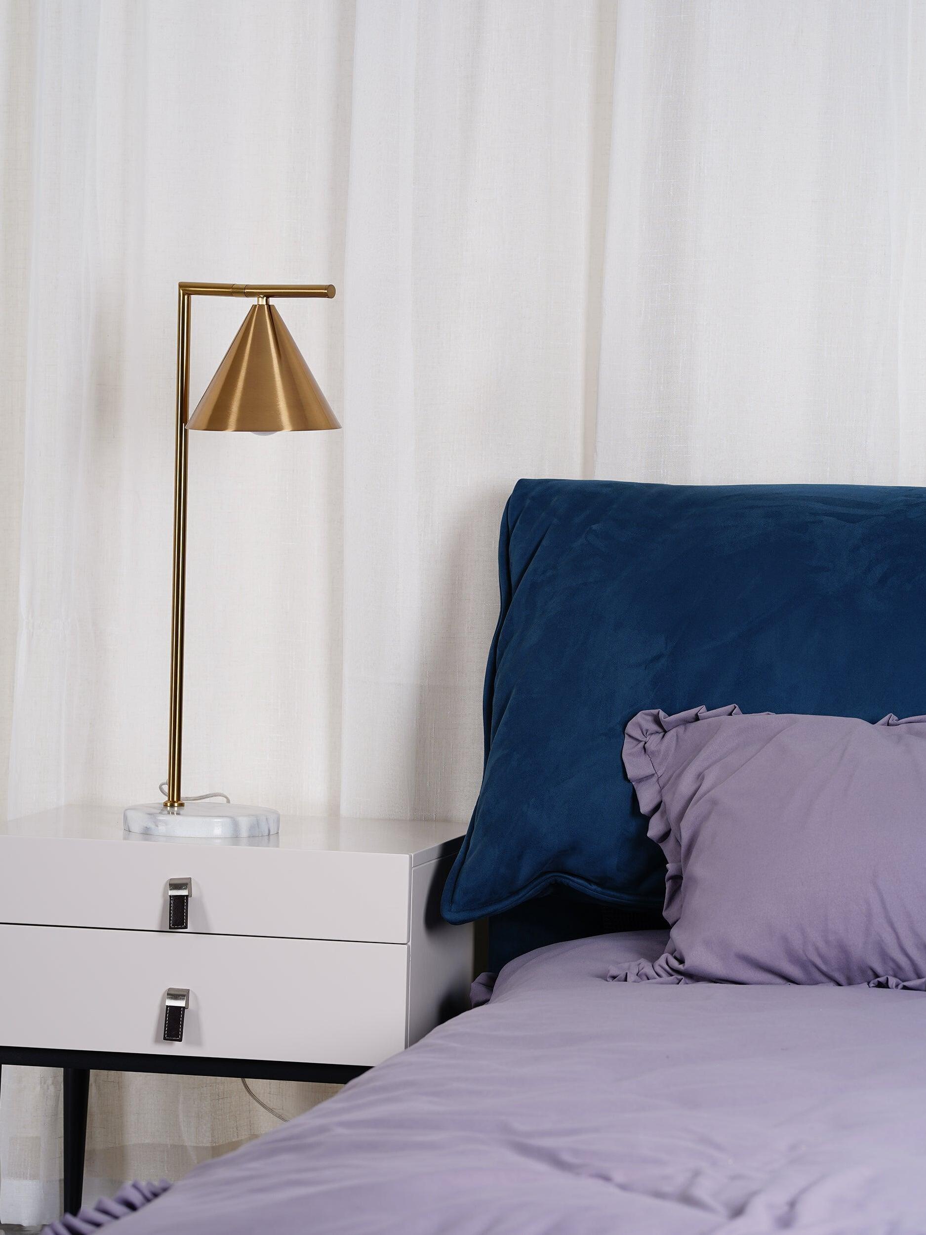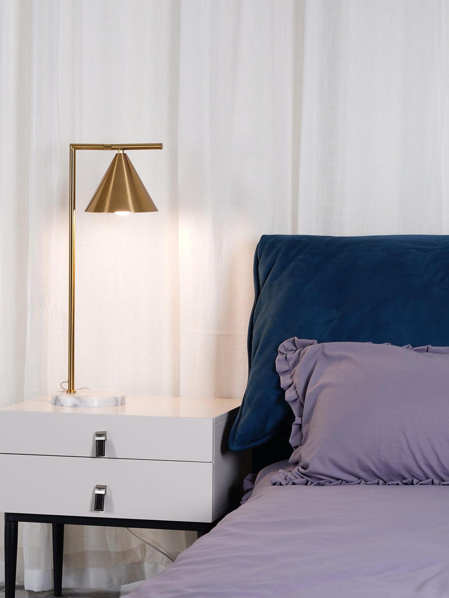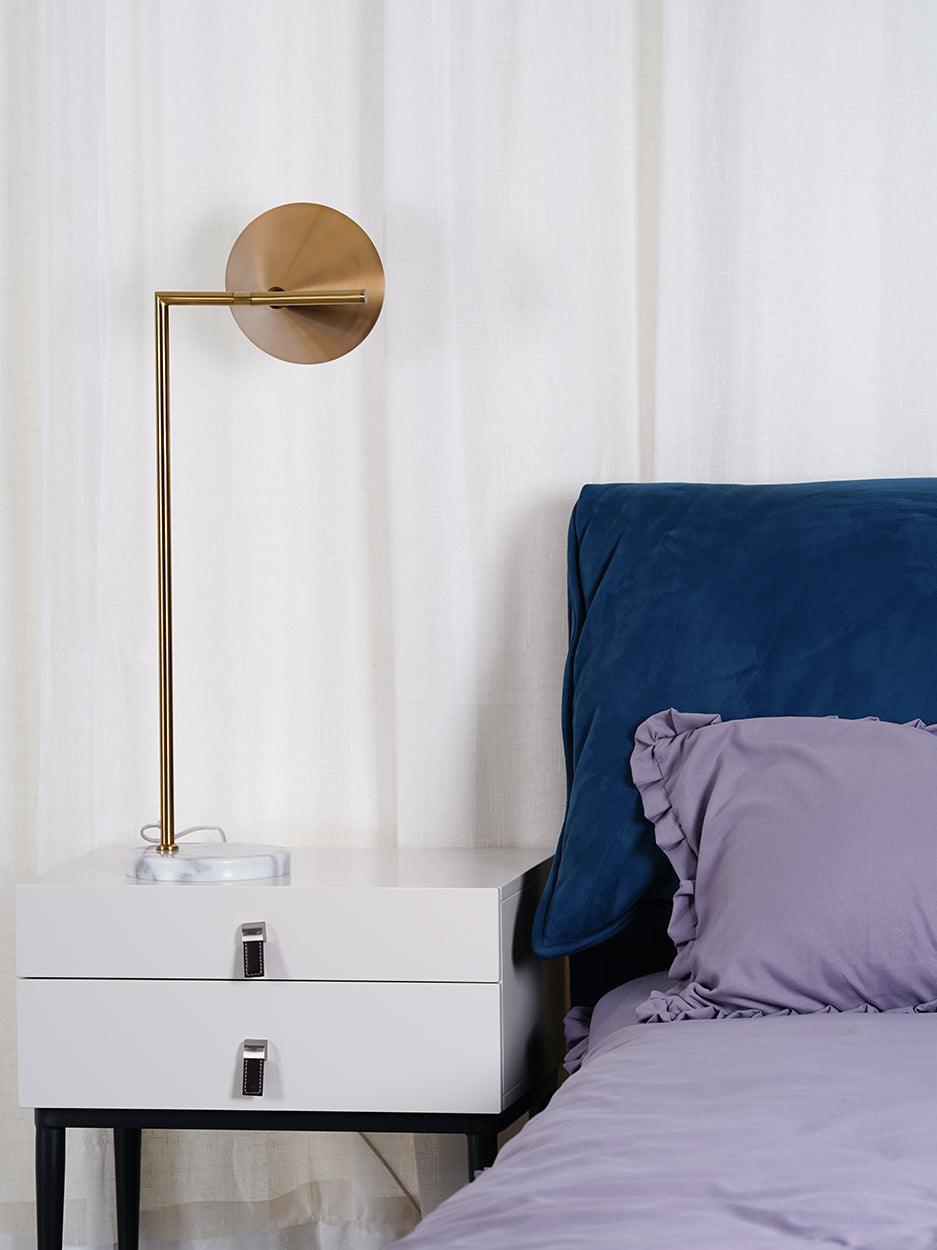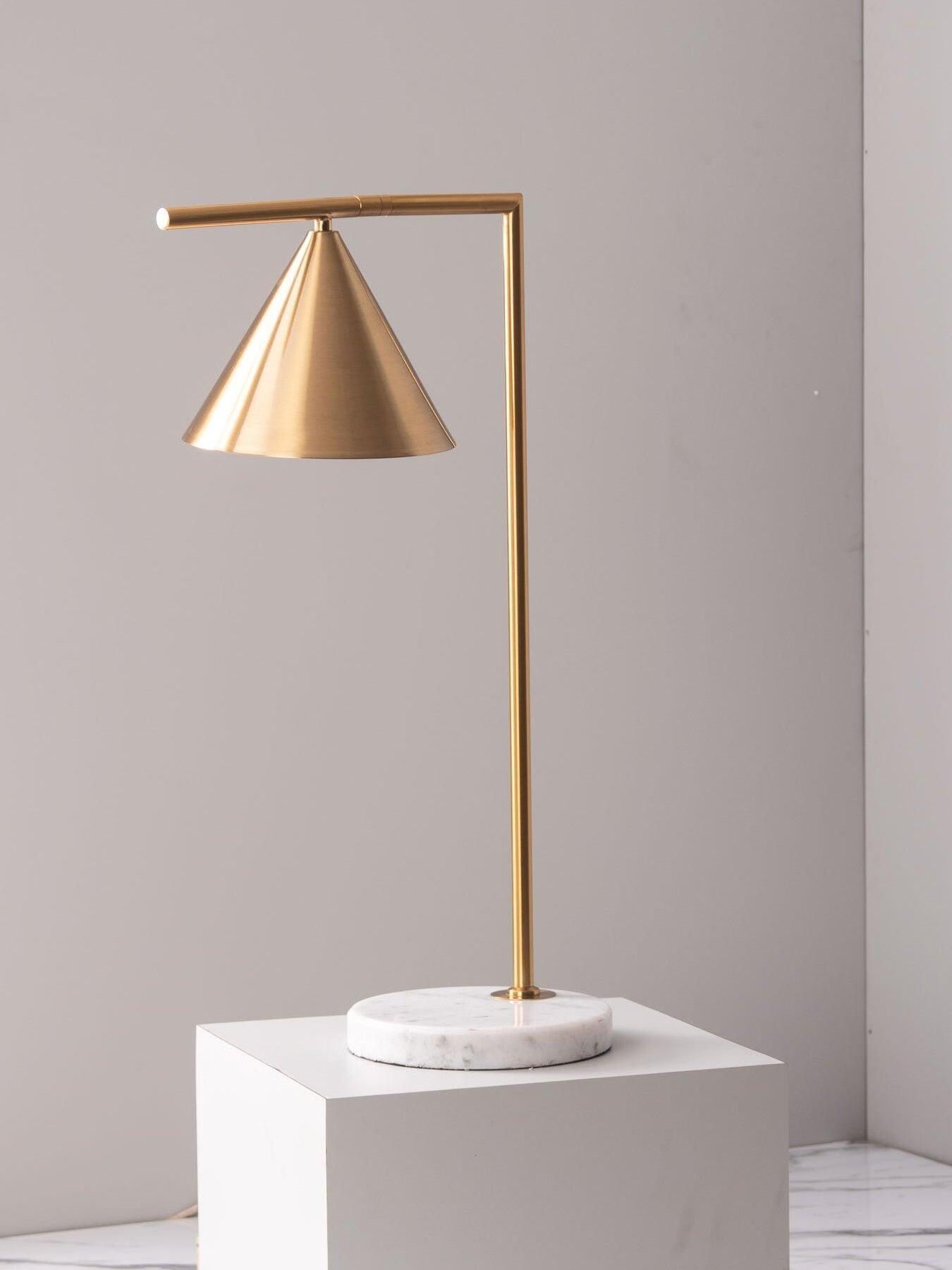 Sleek and graceful, this versatile floor lamp features smart details from head to toe. At the top, its spinning cone diffuser provides direct light that can be repositioned. On the bottom, it is weighted by a stunning white Carrara or black Marquina marble base. Its stem and cone are available in painted steel or brushed brass. The diffuser is injection-molded opal photoengraved PC (polycarbonate). Its power cord measures 200 centimeters and features a foot switch with ON-OFF functions.