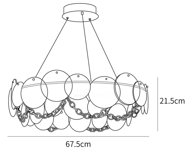 The Cassia LED Chandelier by our lights Lighting is a bold and beautiful design. Set within a handcrafted metal halo that is effortlessly suspended, a series of handmade slabs of opaque glass with abstract swirls captured in their forms are set vertically within this frame.