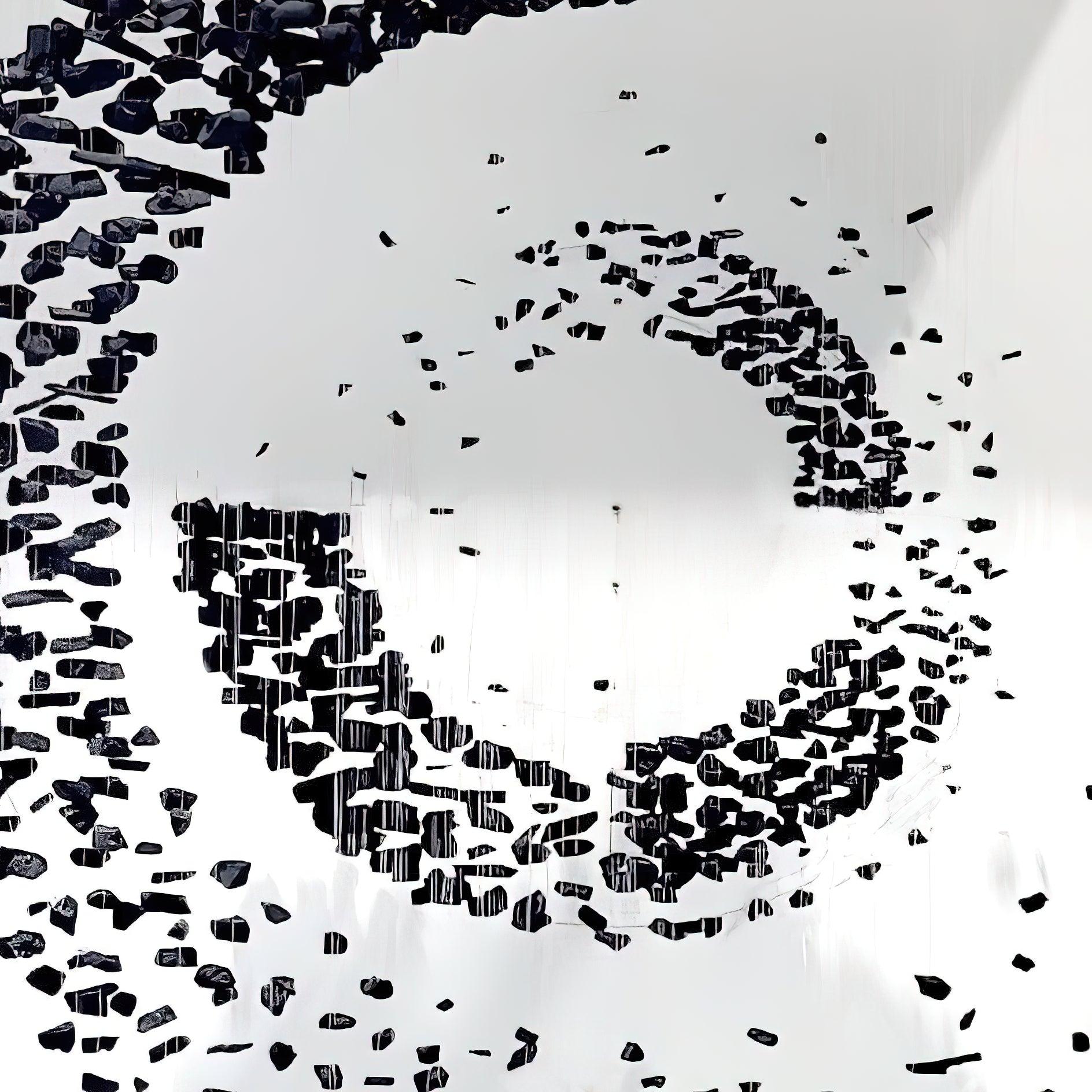 Starting with one piece of charcoal, the artwork crafted for this chandelier extends into a linear composition before spreading to occupy the area, conveying the idea that everything is connected and the universe can be found in a single point. The concept is concise and understandable.
