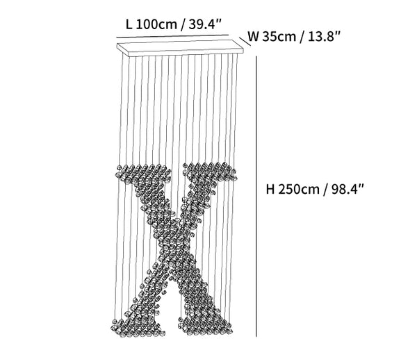 Letter X Size: L100cm x W 35cm x H 250cm / L 39.4″ x W 13.8″ x H 98.4″
