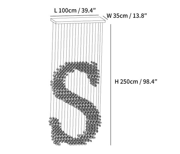 Letter S Size: L100cm x W 35cm x H 250cm / L 39.4″ x W 13.8″ x H 98.4″