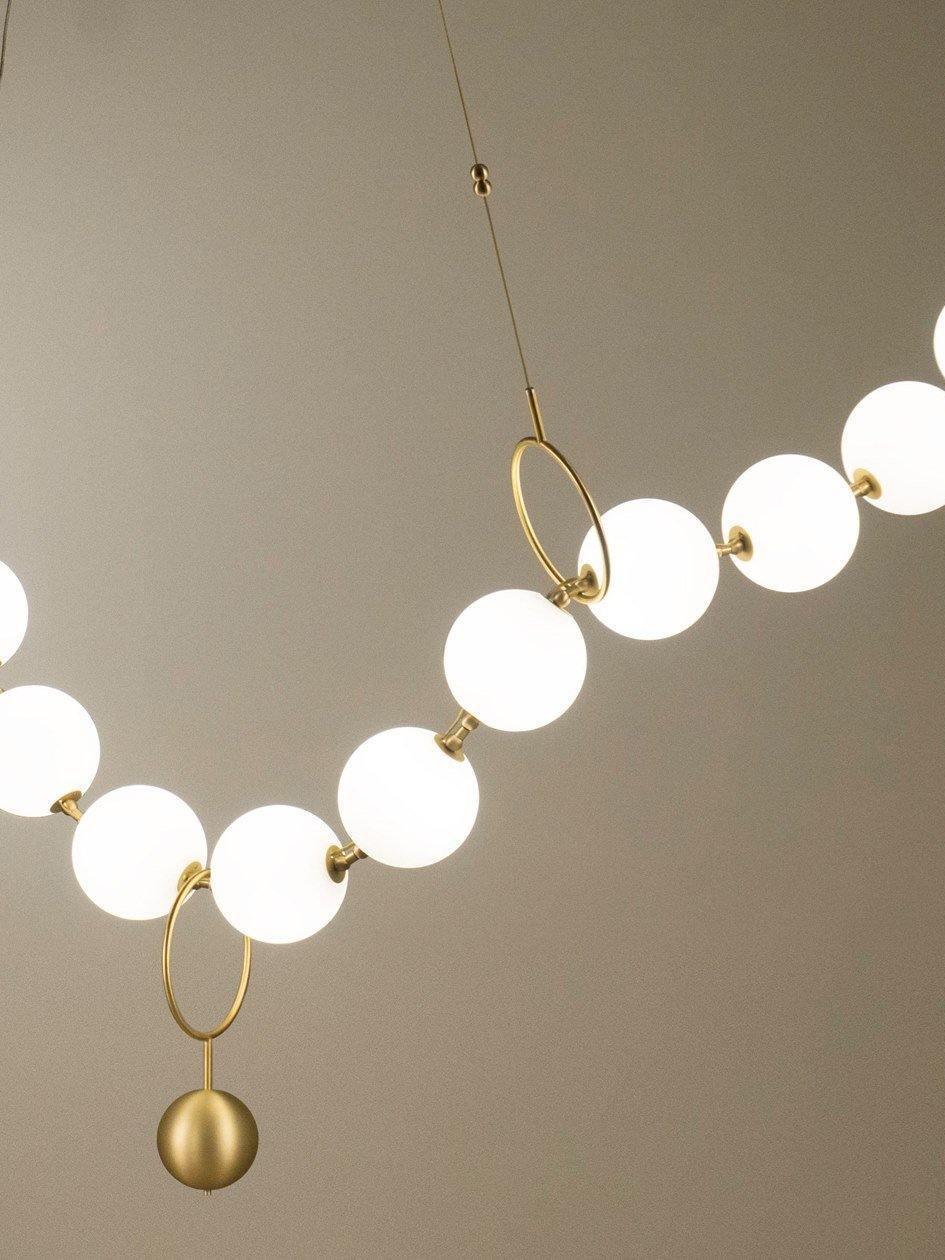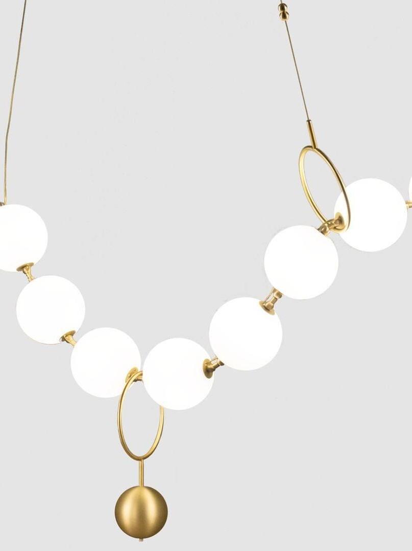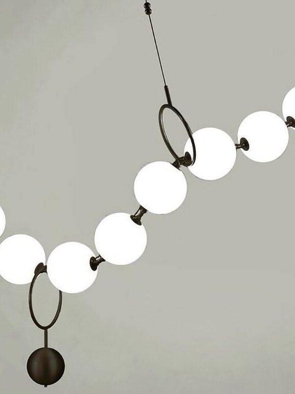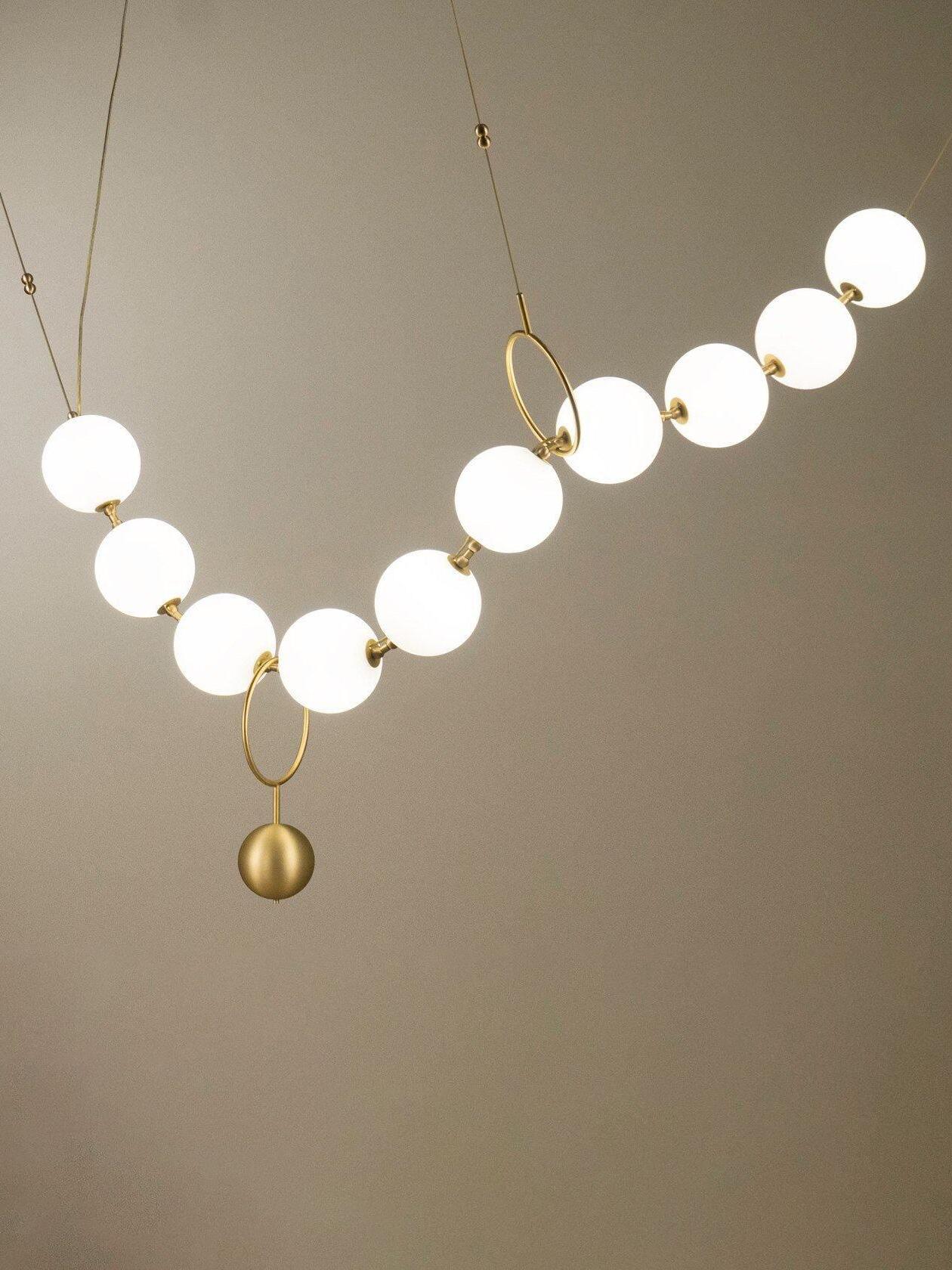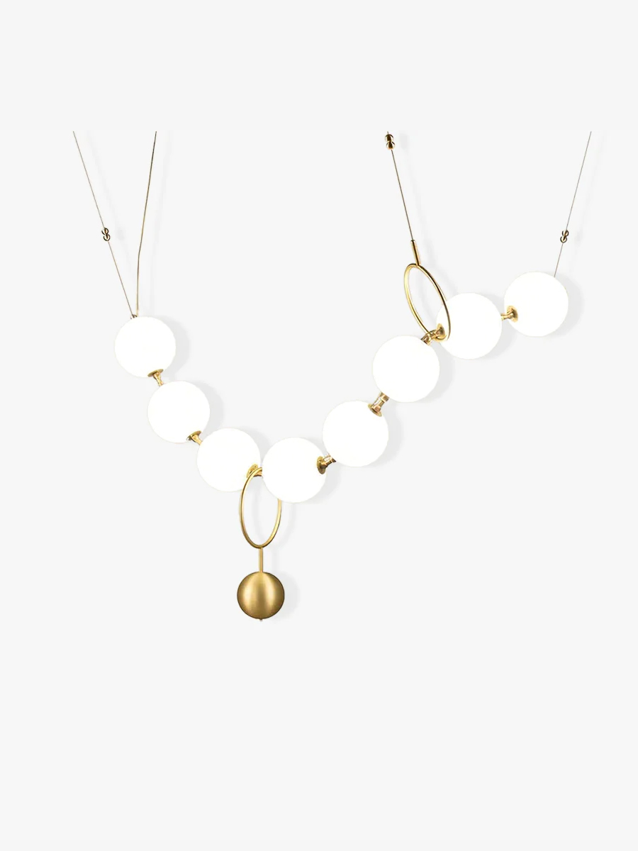 Necklace evokes that supple, elegant and wondrous intersection of jewelry and light. Like a string of pearls, this lamp’s 10 hand-blown glass globes can be arranged in several configurations to adapt to the setting where it will be admired. The finishing touch for this luminous gem is a counterweight and hook that can be added or moved from one “pearl” to another, providing all the flexibility needed for the lamp to fit its space to perfection.