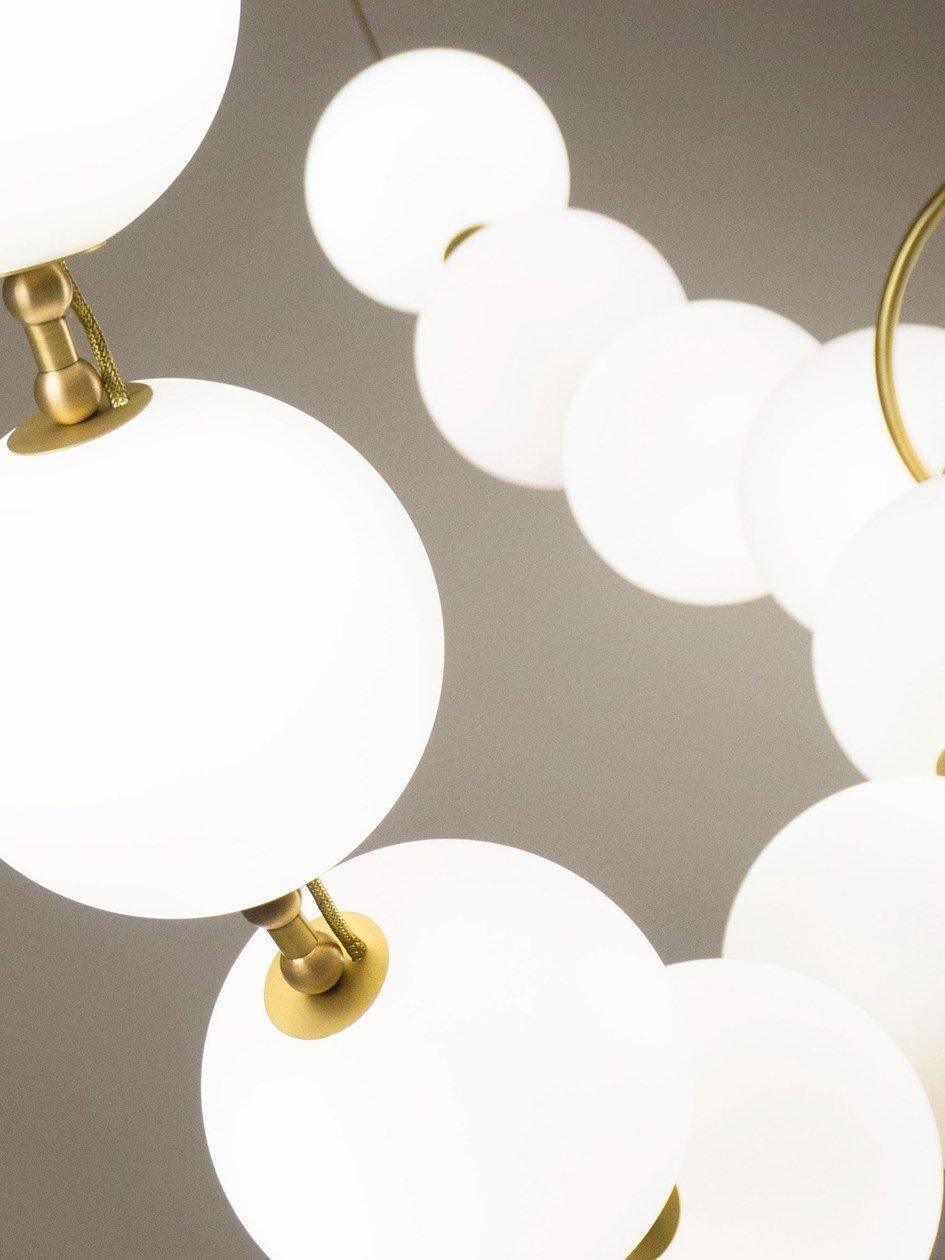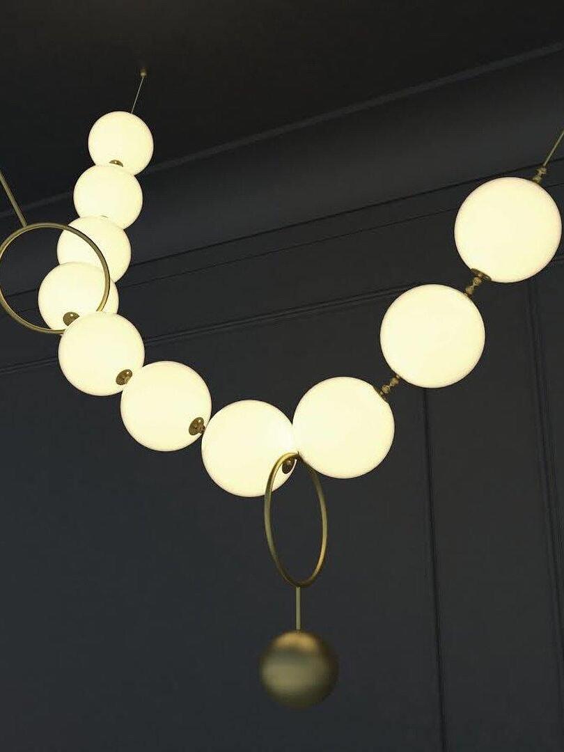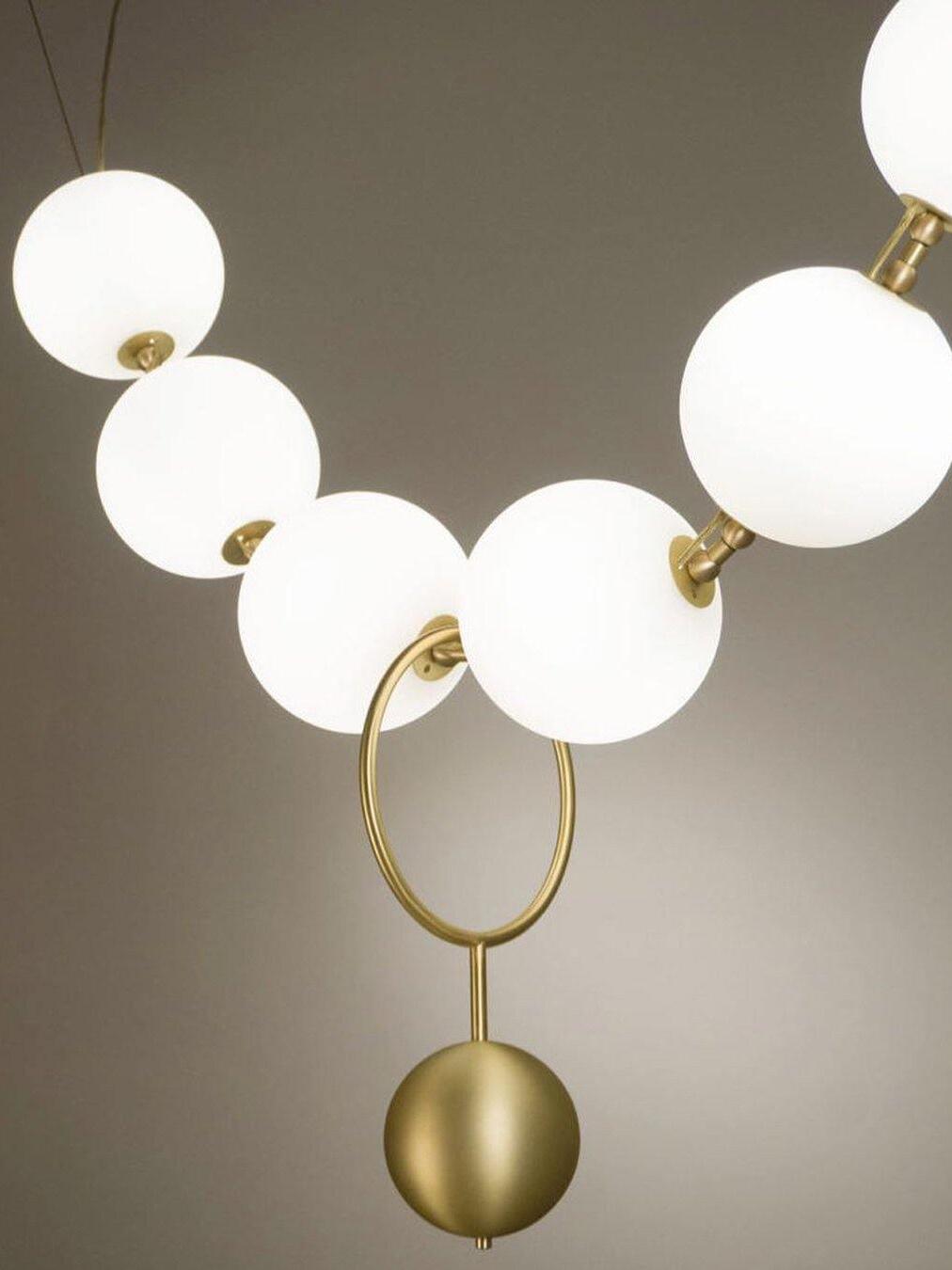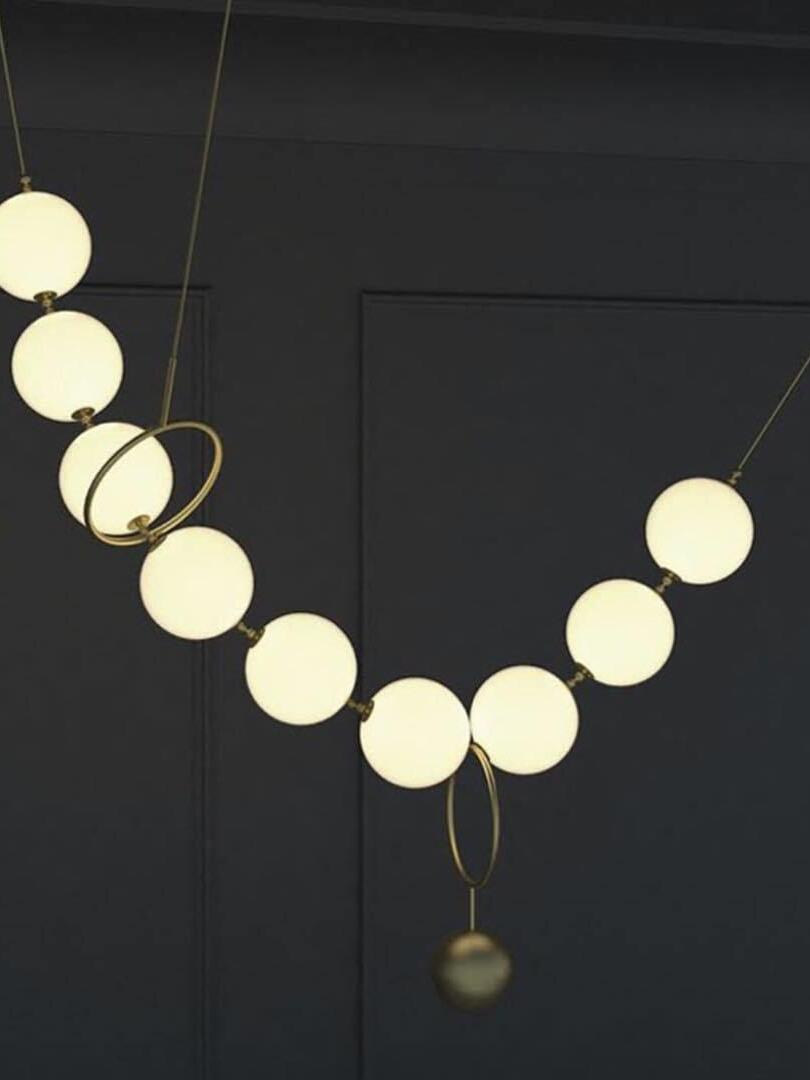 Necklace evokes that supple, elegant and wondrous intersection of jewelry and light. Like a string of pearls, this lamp’s 10 hand-blown glass globes can be arranged in several configurations to adapt to the setting where it will be admired. The finishing touch for this luminous gem is a counterweight and hook that can be added or moved from one “pearl” to another, providing all the flexibility needed for the lamp to fit its space to perfection.