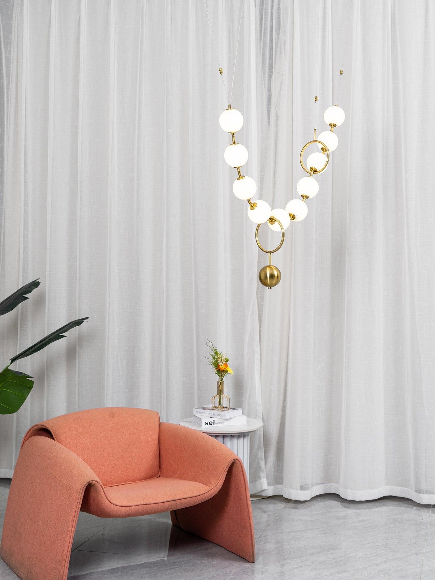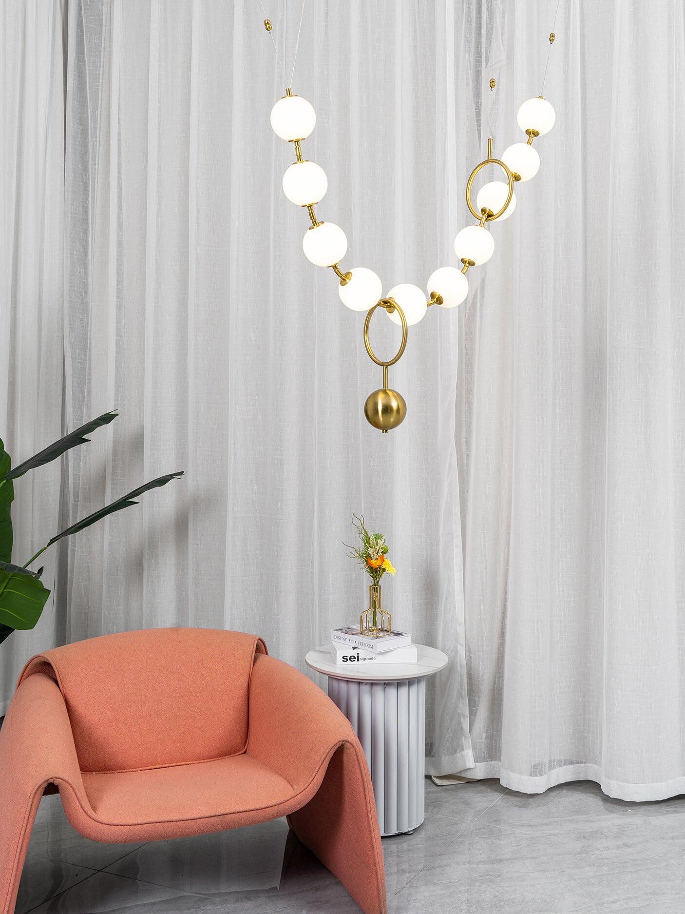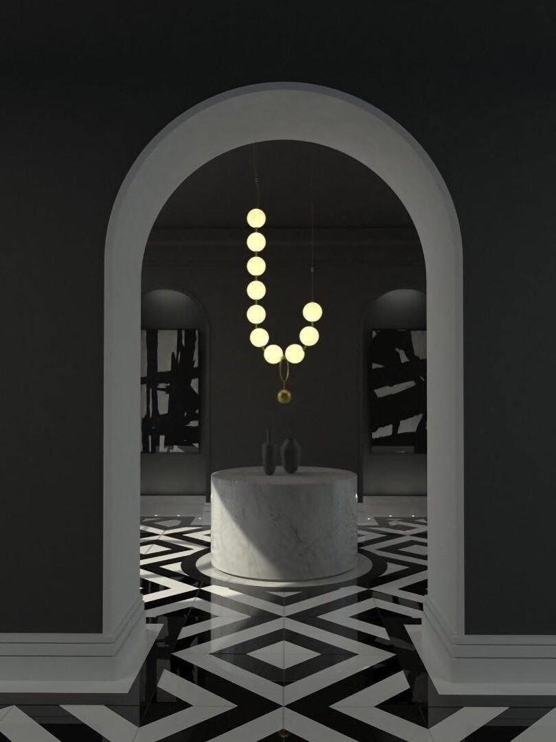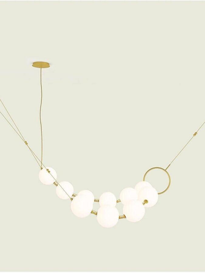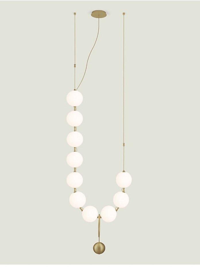 Necklace evokes that supple, elegant and wondrous intersection of jewelry and light. Like a string of pearls, this lamp’s 10 hand-blown glass globes can be arranged in several configurations to adapt to the setting where it will be admired. The finishing touch for this luminous gem is a counterweight and hook that can be added or moved from one “pearl” to another, providing all the flexibility needed for the lamp to fit its space to perfection.