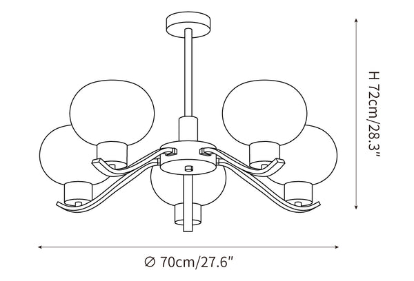 5 heads Size: Dia 70cm x H 72cm / ∅ 27.6″ x H 28.3″