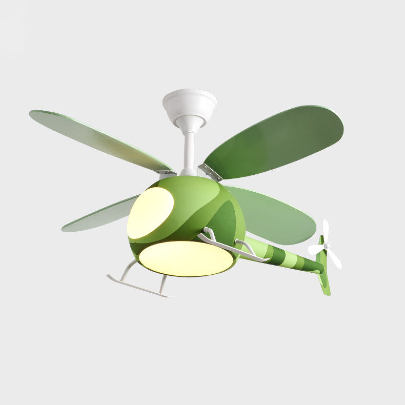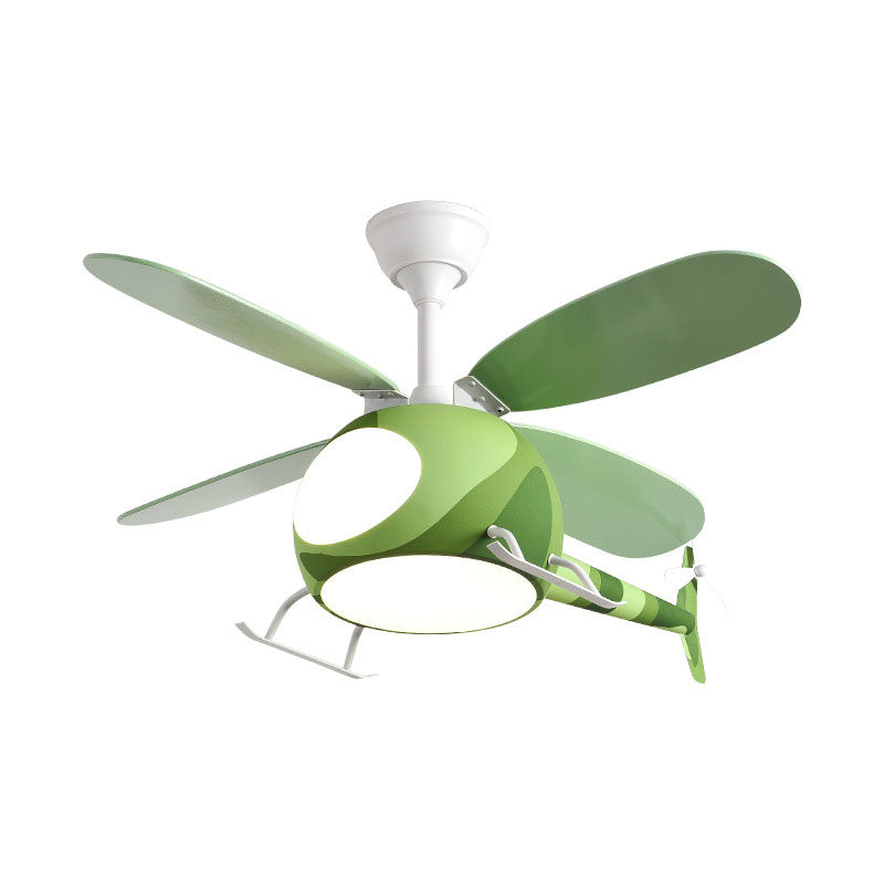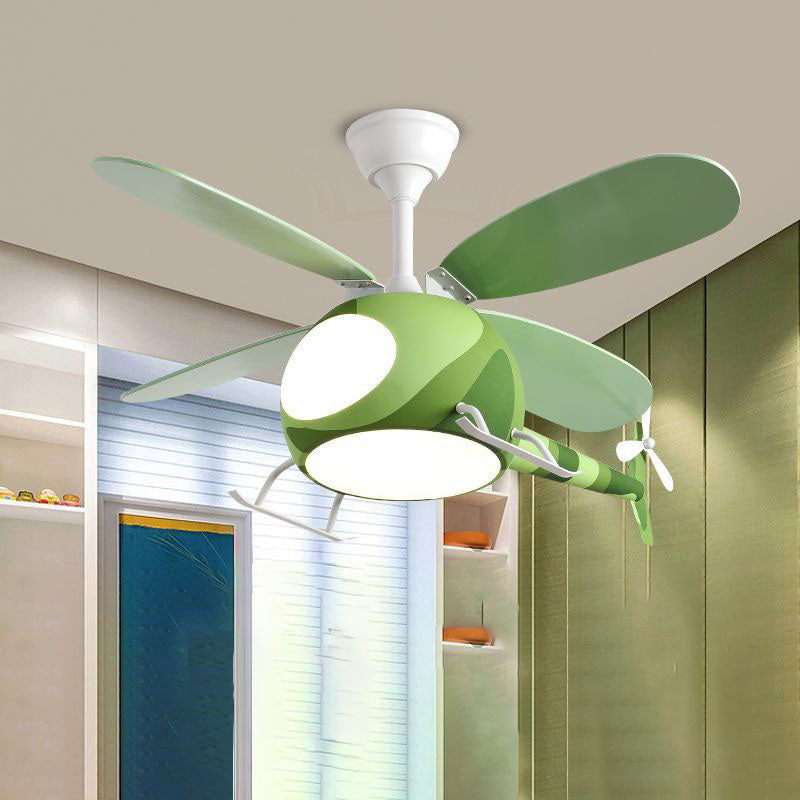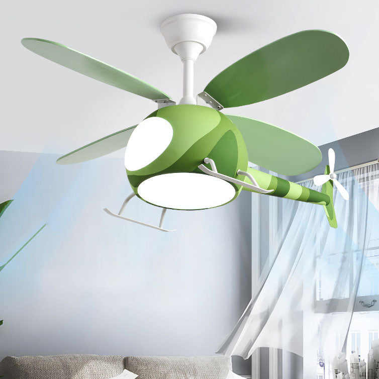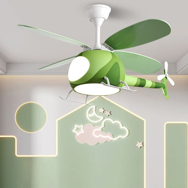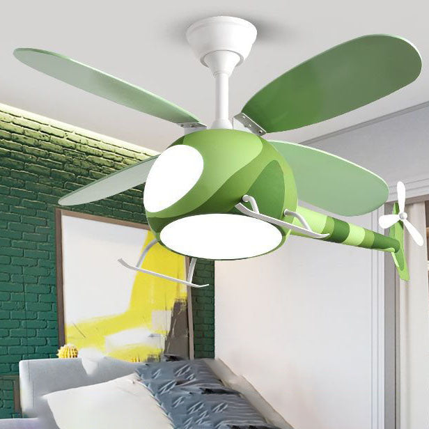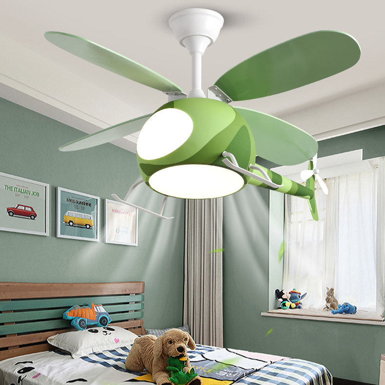 Contemporary Creative Iron Cartoon Planes LED Downrods Ceiling Fan Light for Bedroom
