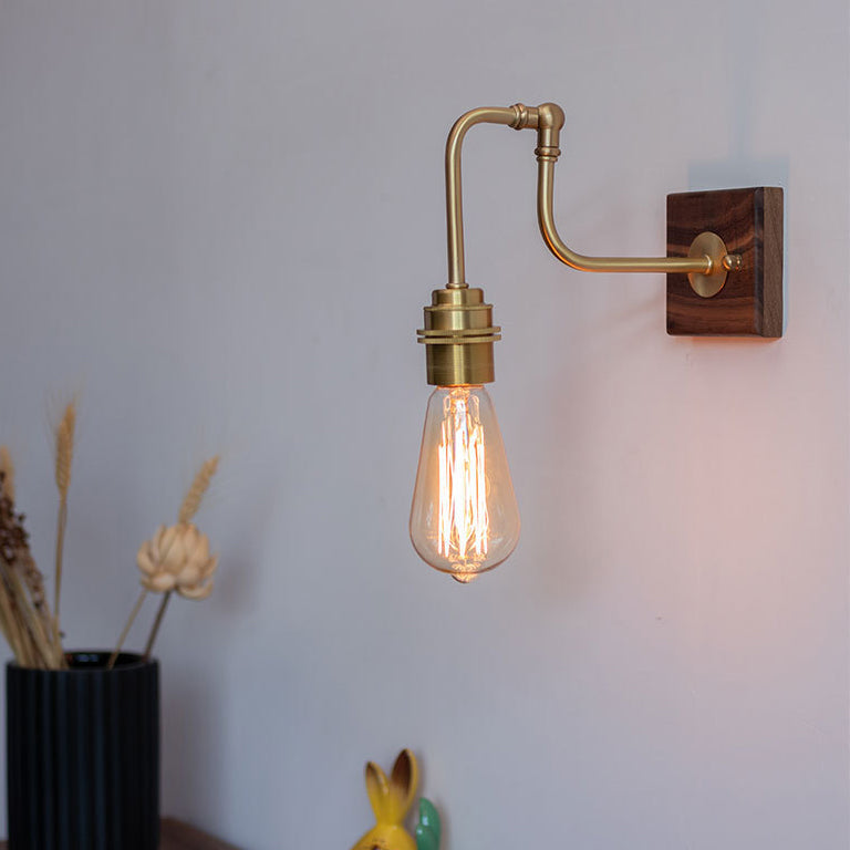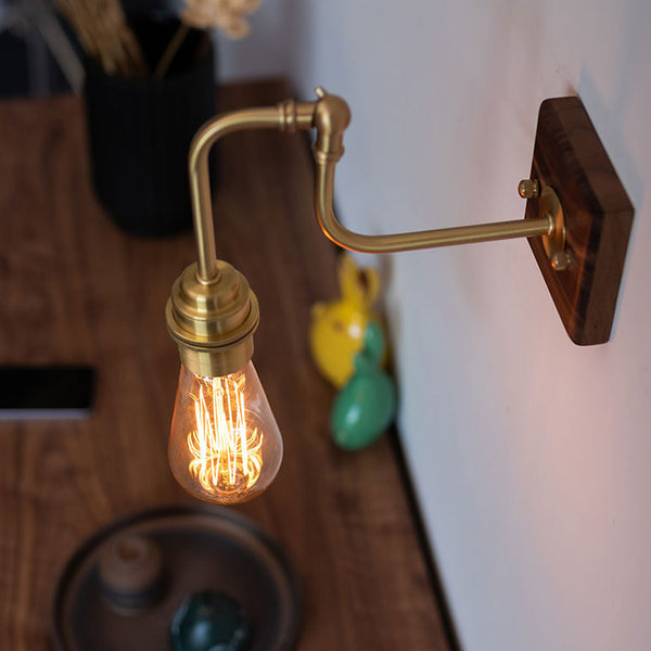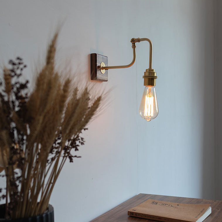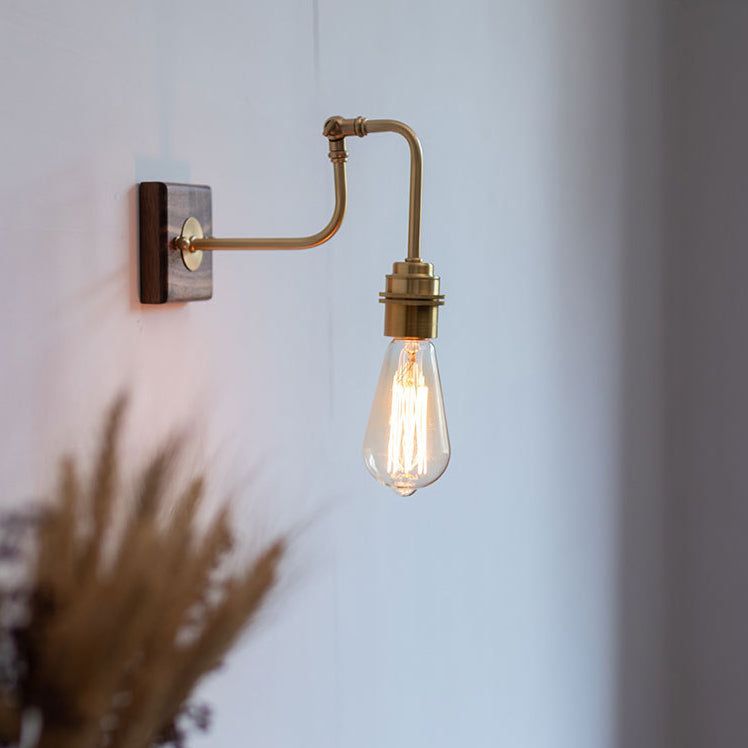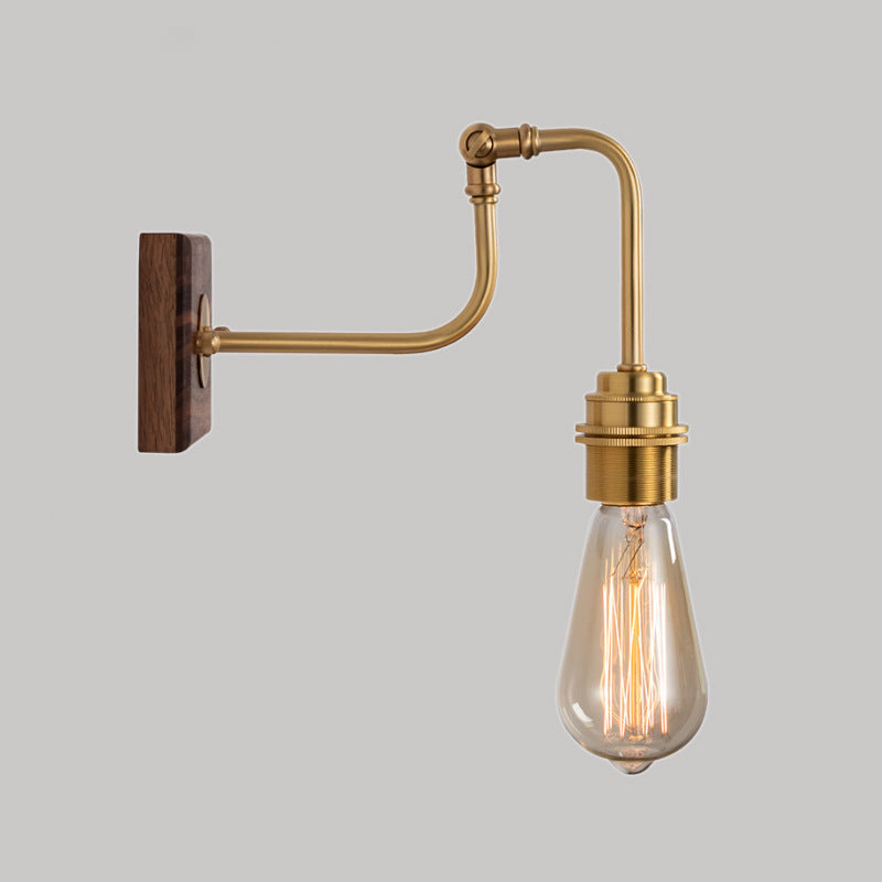 Contemporary Retro Copper Solid Wood 1-Light Wall Sconce Lamp For Bedroom