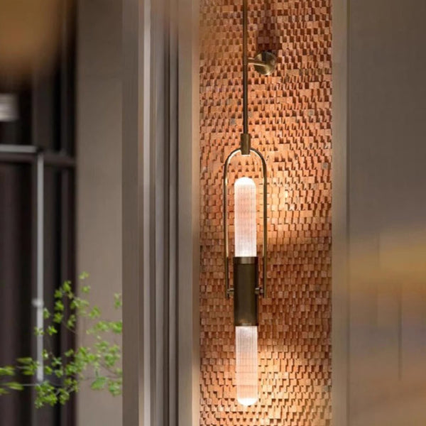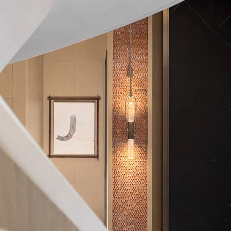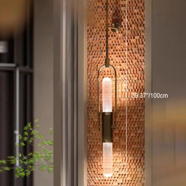Contemporary Scandinavian Long Cylinder Glass Aluminum 2-Light Wall Sconce Lamp For Living Room
