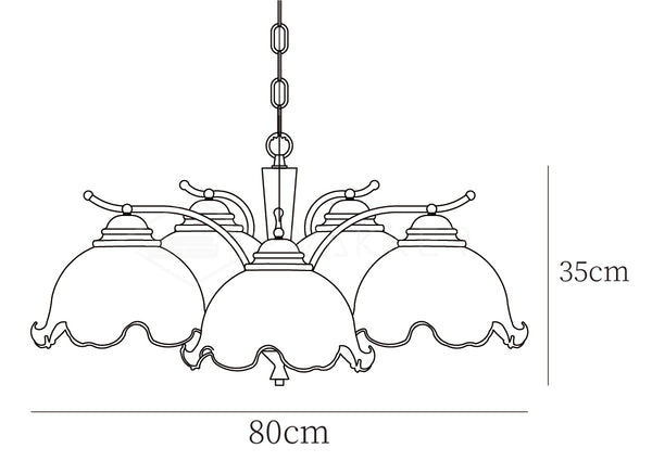 Inspired by the atmosphere of romantic dates in Parisian cafés, this chandelier will enchant anyone with its elegance. Like flower buds about to blossom out on the thin brass stalks, the with cracks flower lampshades diffuse the light, making it soft and comfortable for the eye. The beautiful rounded shapes and harmonious colours make this fixture look aesthetically pleasing.