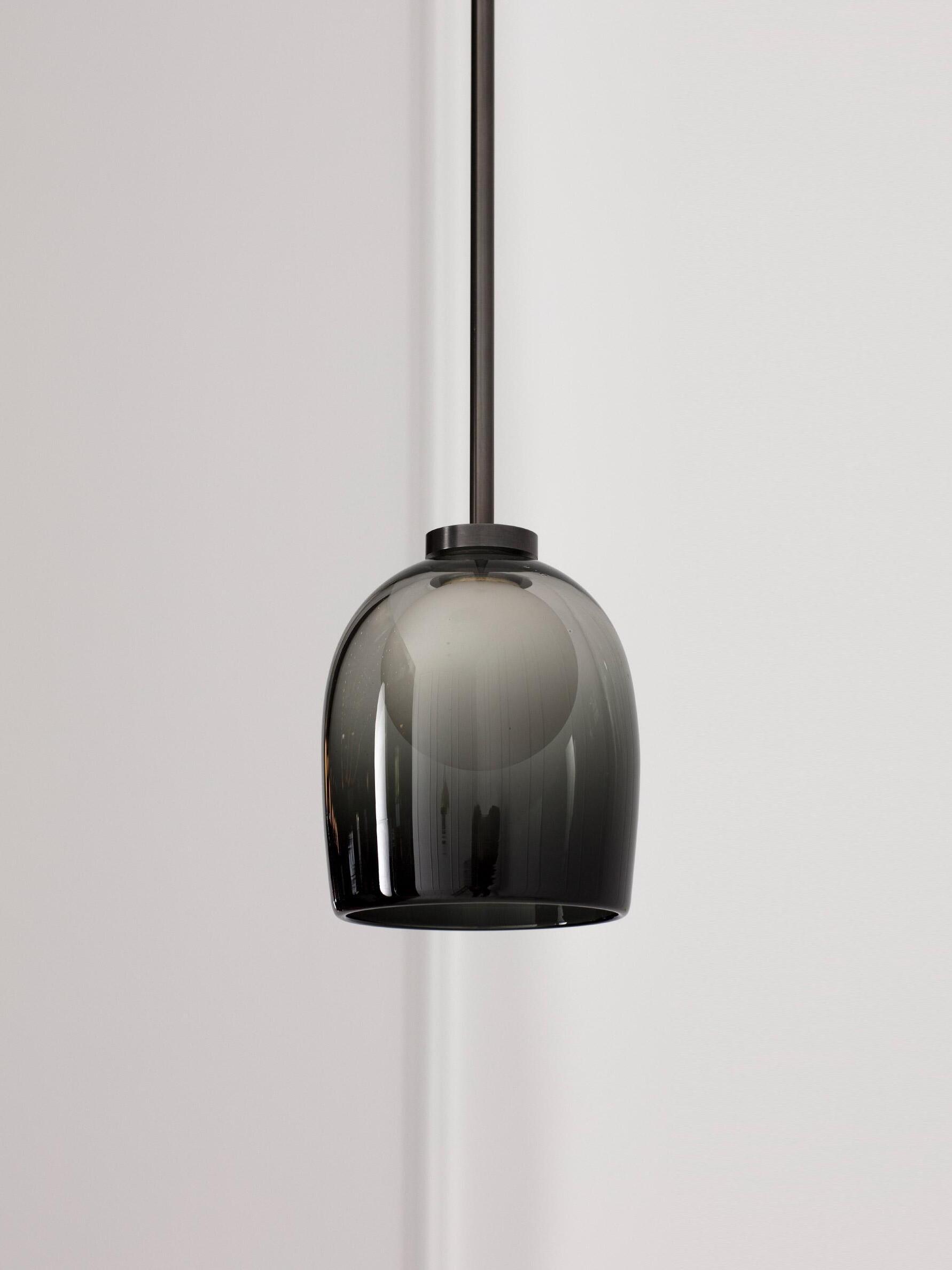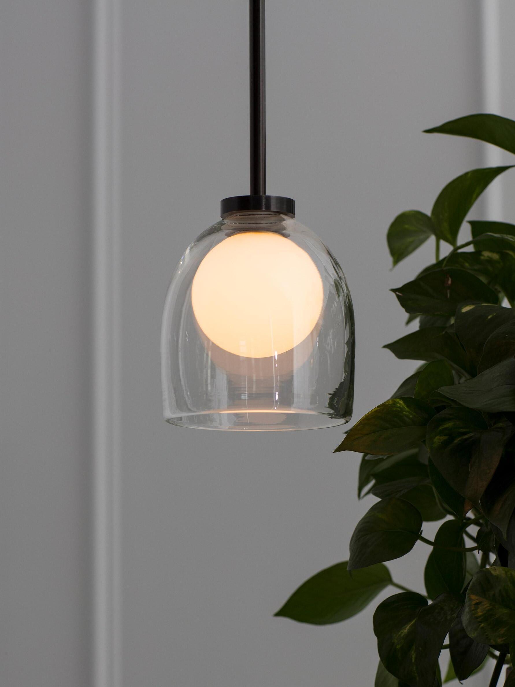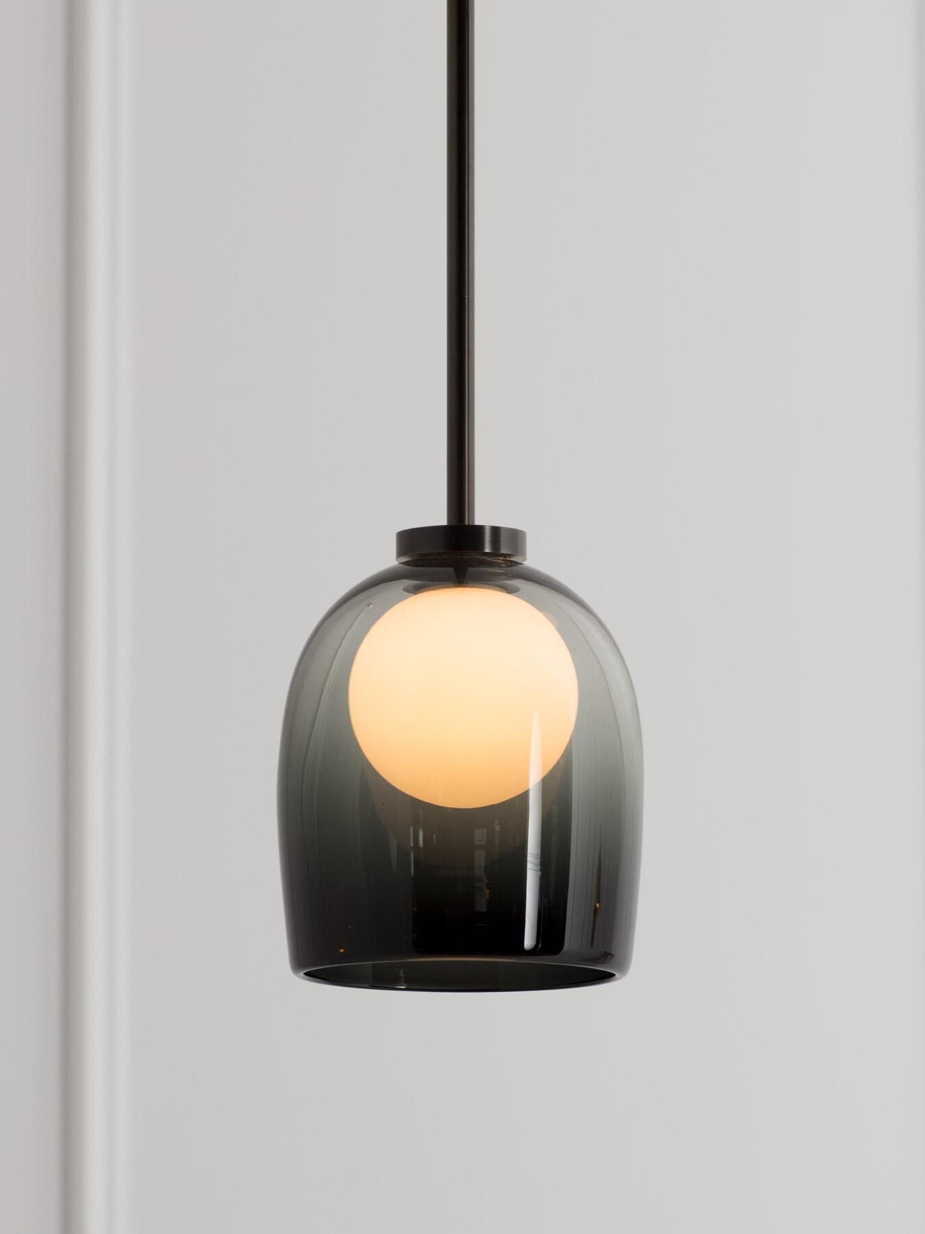 Simple and mysterious, a glass sphere seemingly floats inside a hand-blown bell.