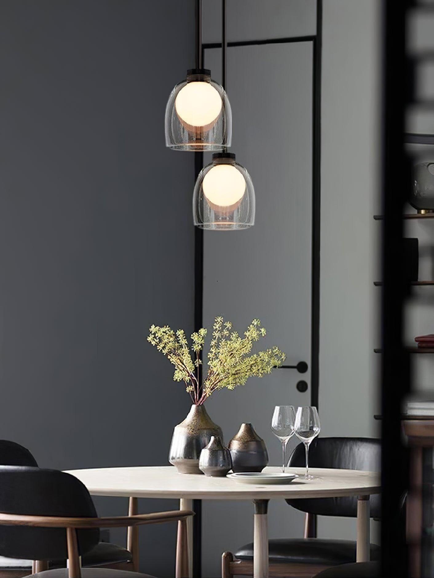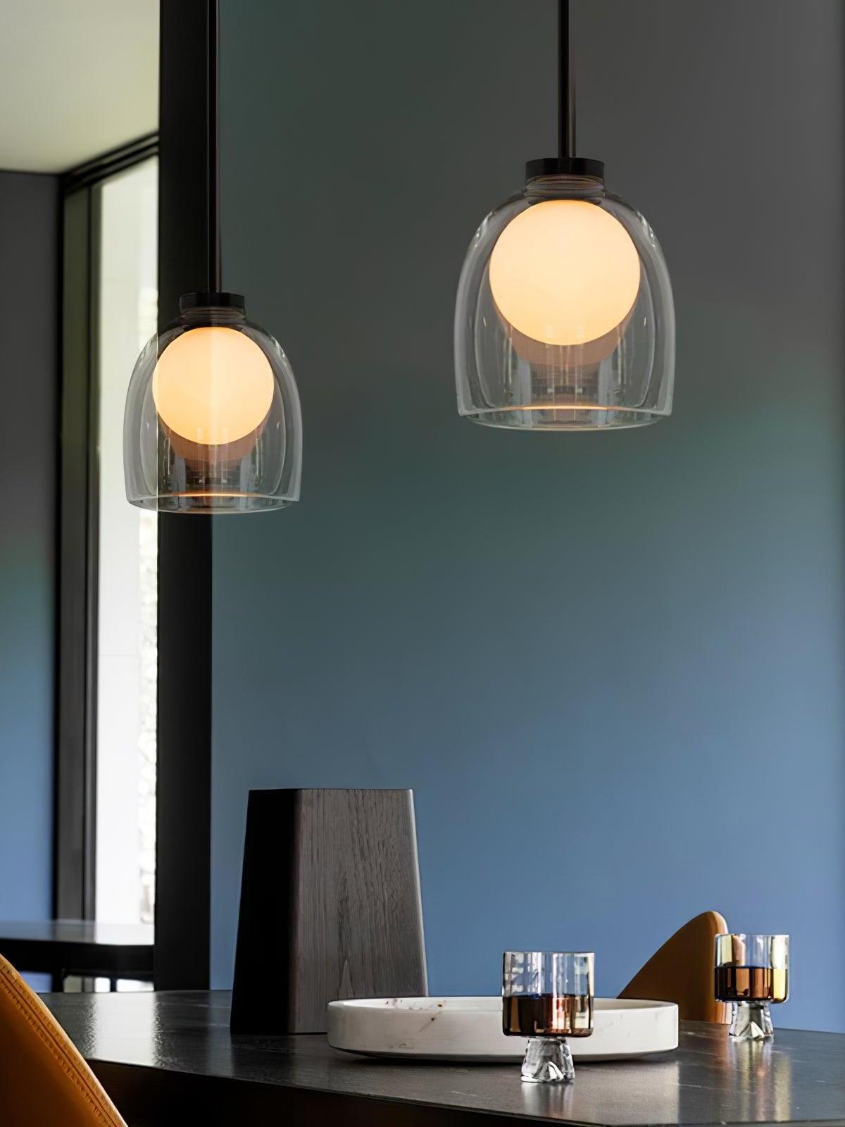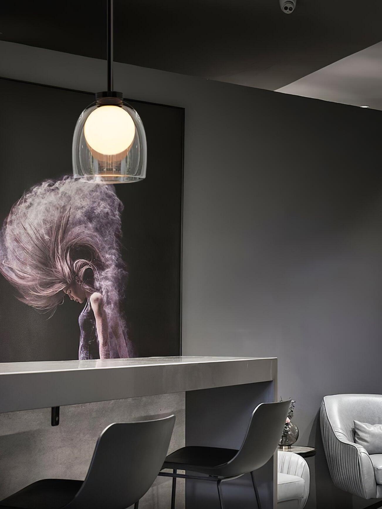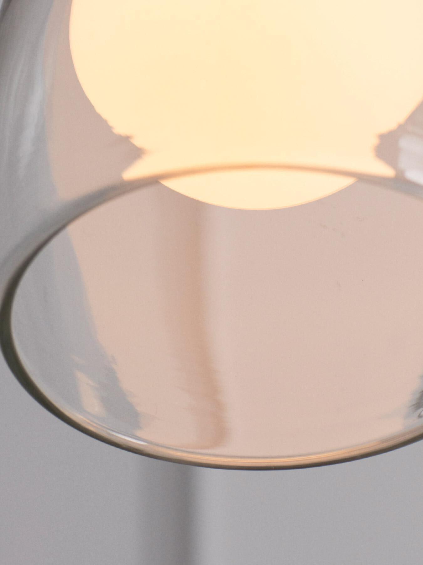Simple and mysterious, a glass sphere seemingly floats inside a hand-blown bell.