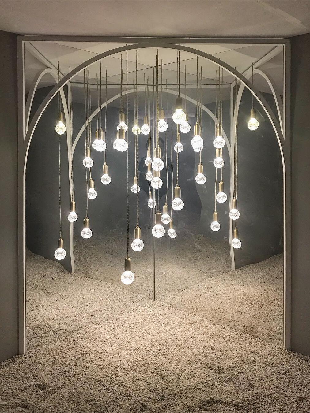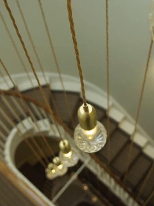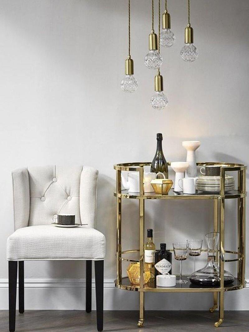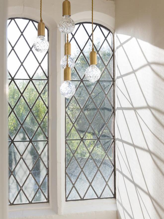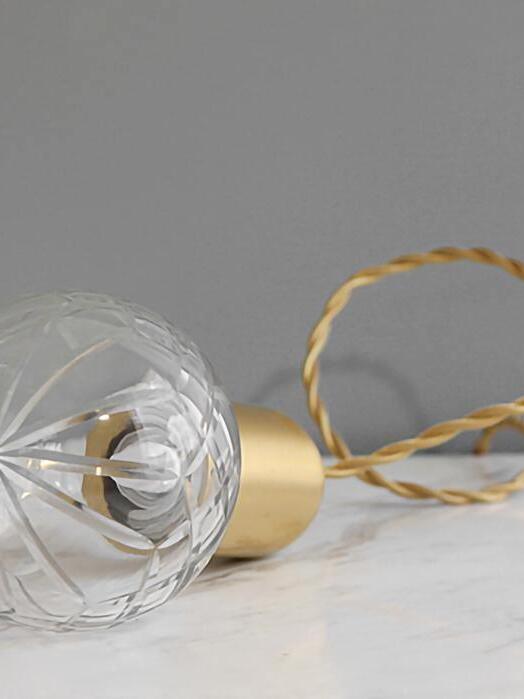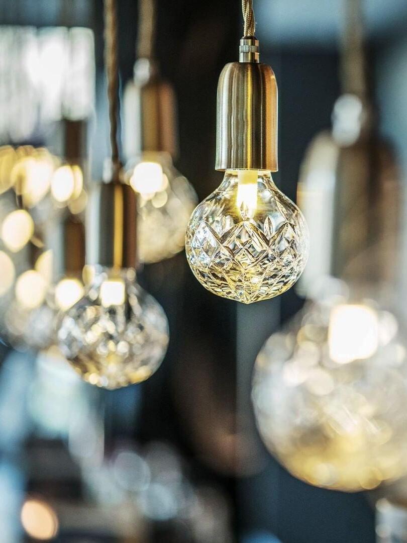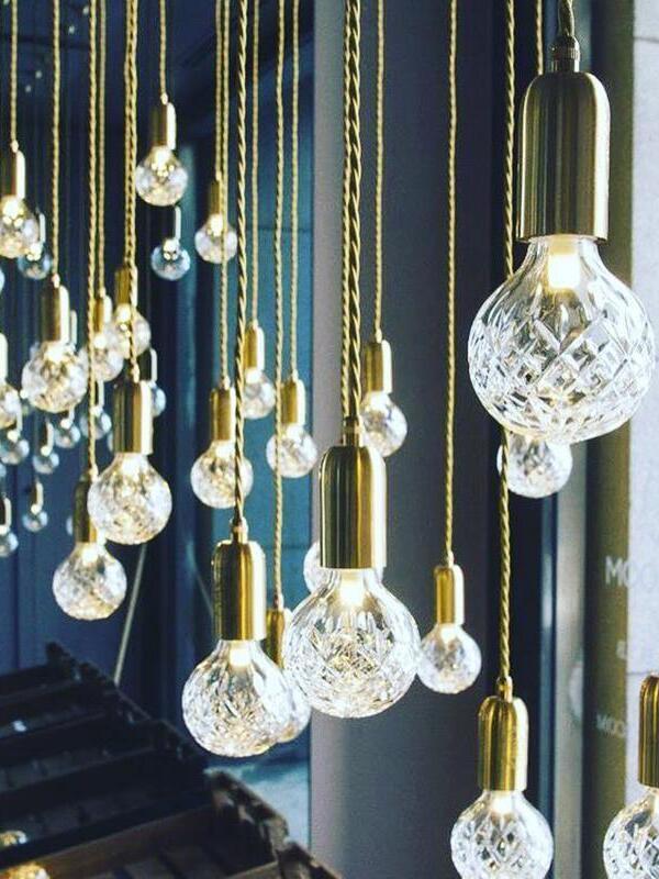 With the Crystal Bulb LED Multi-Light Pendant, Takes inspiration from the exquisite and meticulous process of crystal cutting, commonly seen in traditional whiskey glasses and decanters. A grouping of spherical crystal shades suspends in an elegant composition, highlighted by their sophisticated hand-cut design. LED lighting diffused by the shades culminates into a clean ambient glow that accentuates the engraved ornamental logo on each of the Steel lamp holders.