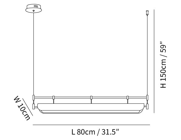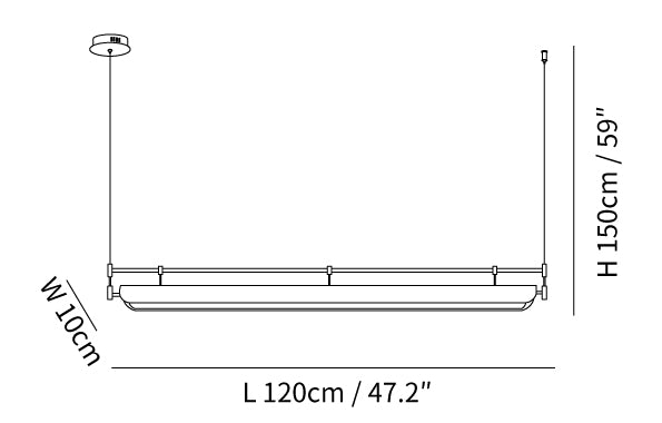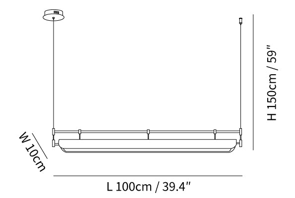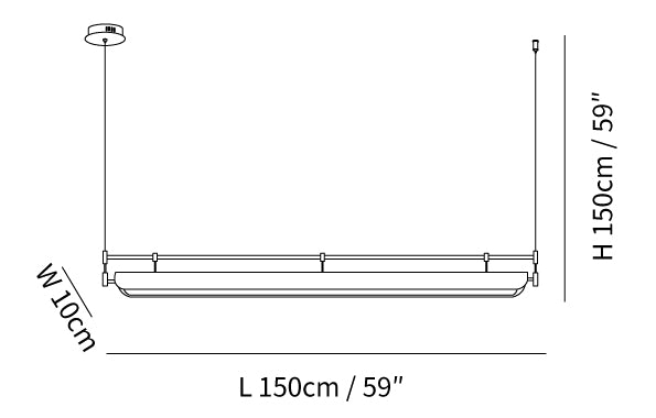 59″ Adjustable hanging height cable. Can be extended upon request.