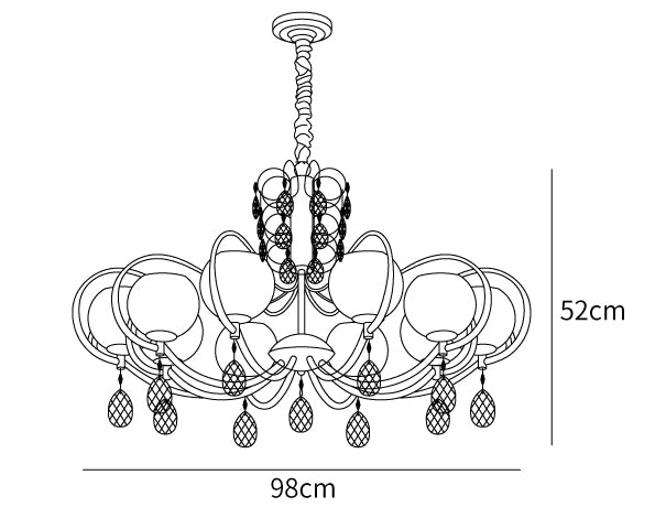 The Doria Crystal Chandelier is an exquisite statement piece, crafted with a metal frame and beautiful glass crystals. Featuring an eye-catching design, this elegant chandelier provides a luxurious atmosphere to any room while adding a special touch of glamor.